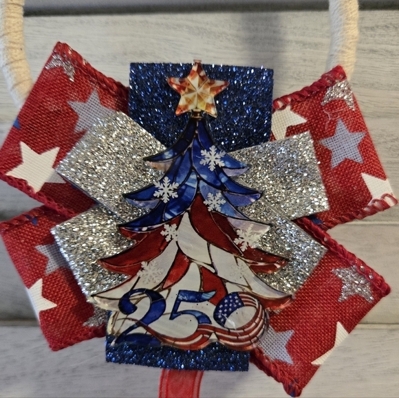 Handmade Christmas USA 250th Anniversary Door Hanger Door Knob Hanger Patriotic