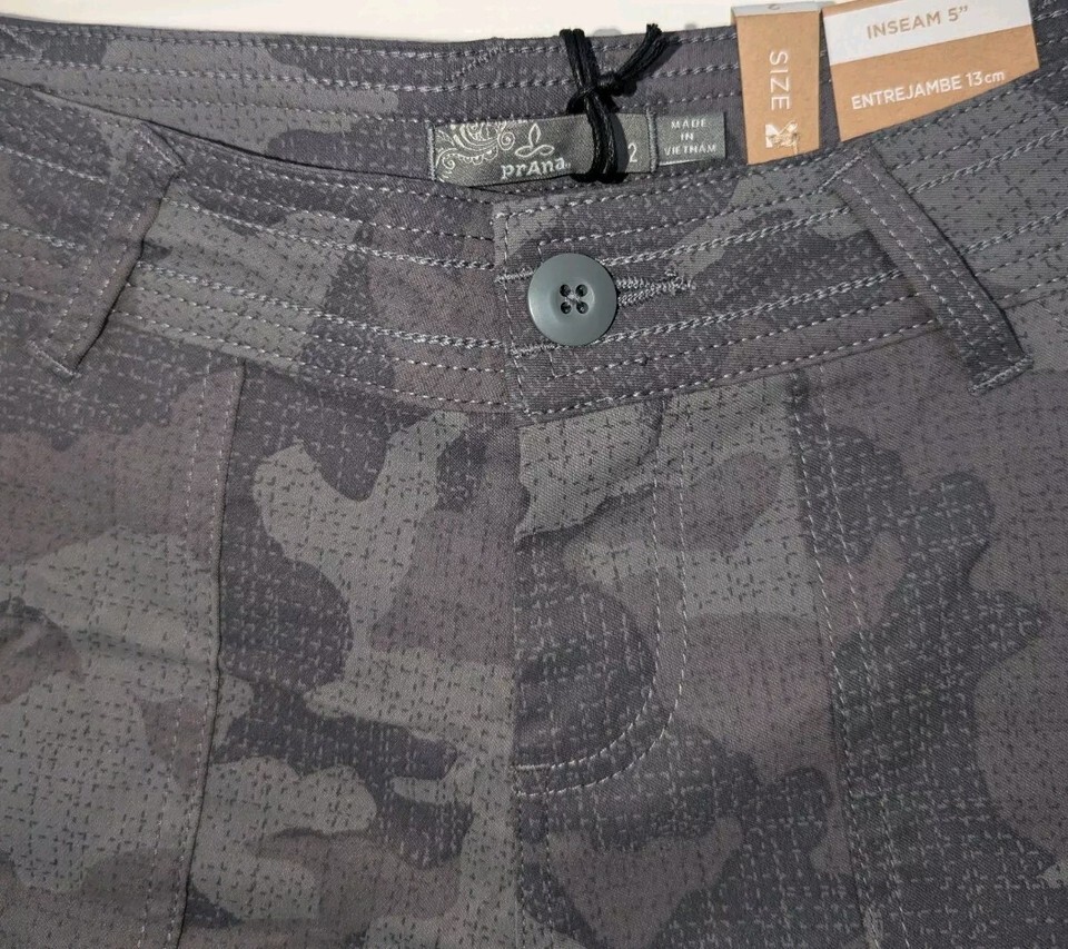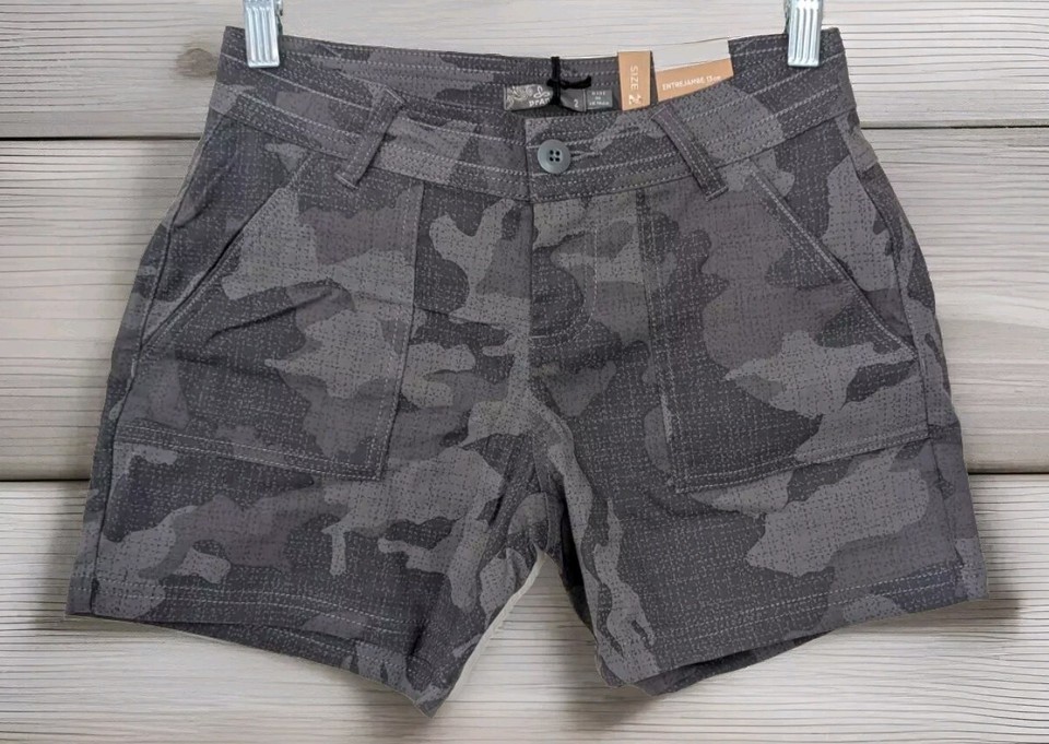 NWT PrAna Olivia Gravel Camo Hike Trail Shorts Womens Sz 2 5" Inseam UPF 50+