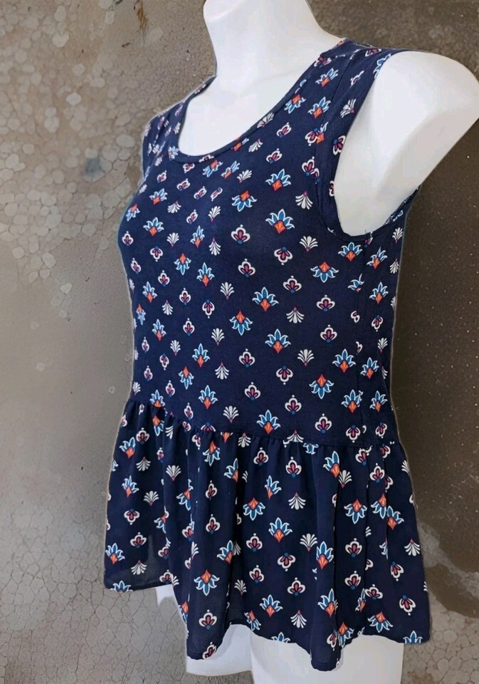 Loft Womens Sleeveless Blouse Size Xtra Small Navy Blue Floral Print Top. Condition is Pre-owned. Shipped with USPS Ground Advantage.