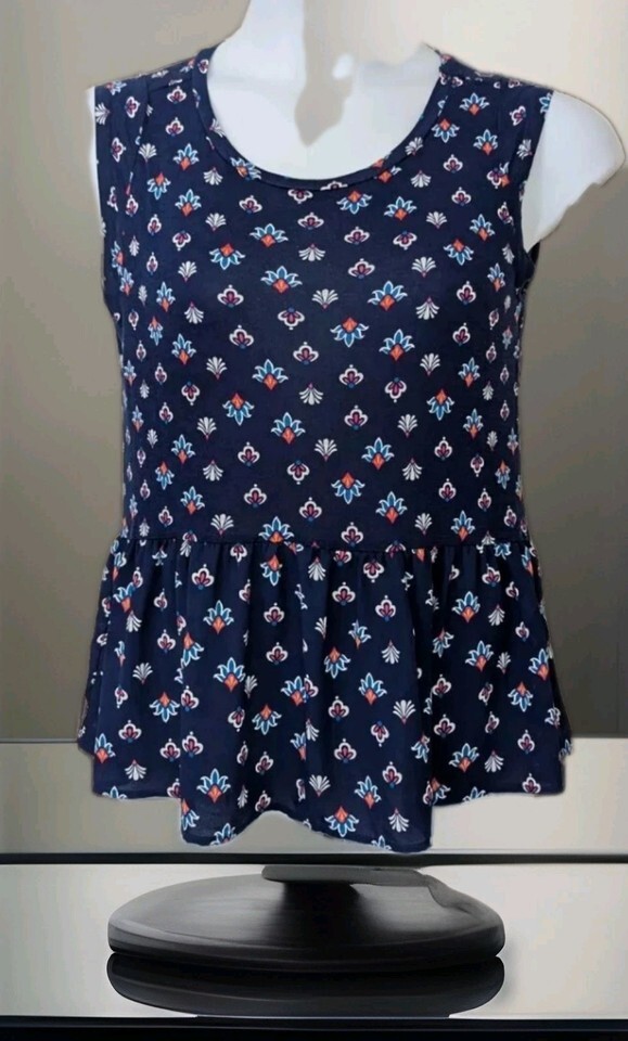 Loft Womens Sleeveless Blouse Size Xtra Small Navy Blue Floral Print Top