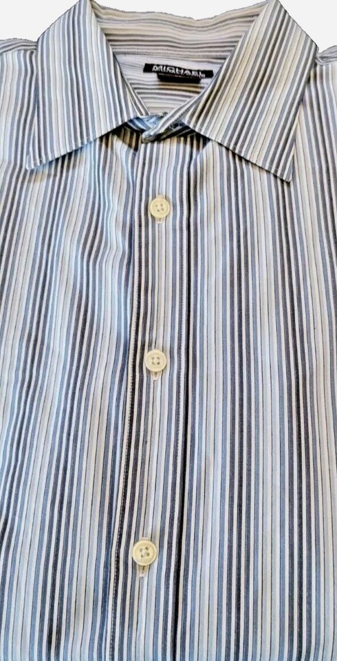 Michael Kors Blue Silver Striped Classic Fit Cotton Button Front Shirt Size XL