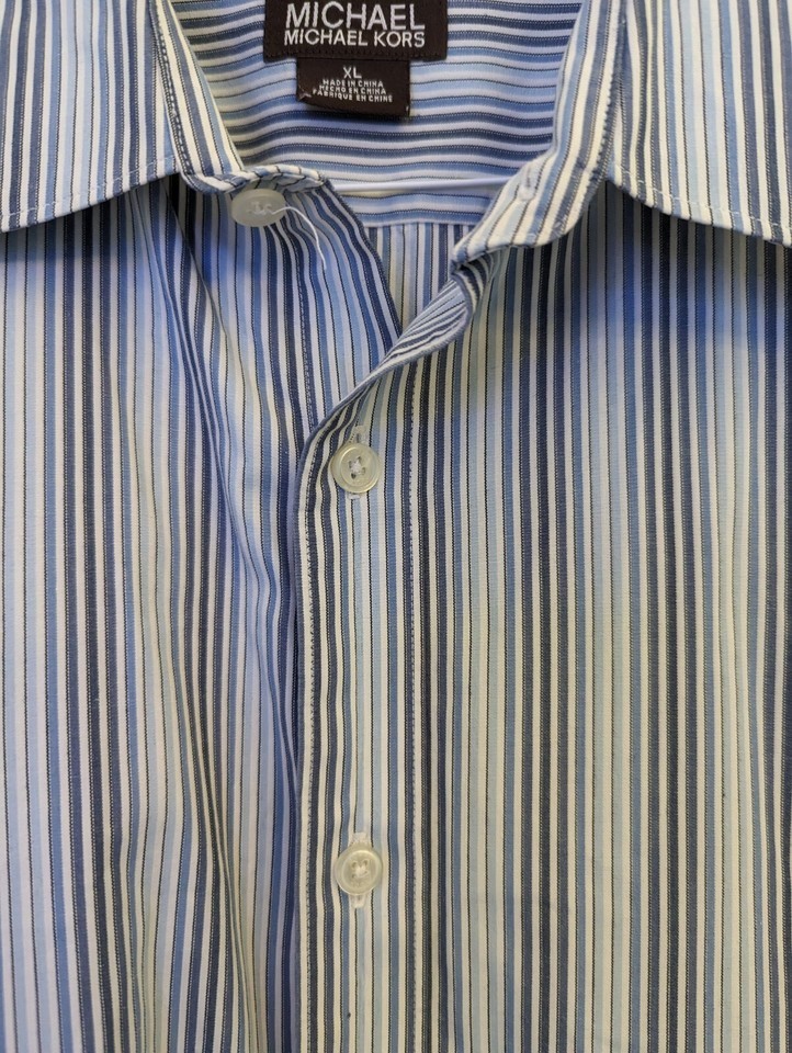 Michael Kors Blue Silver Striped Classic Fit Cotton Button Front Shirt Size XL. Condition is Pre-owned. Shipped with USPS Ground Advantage.