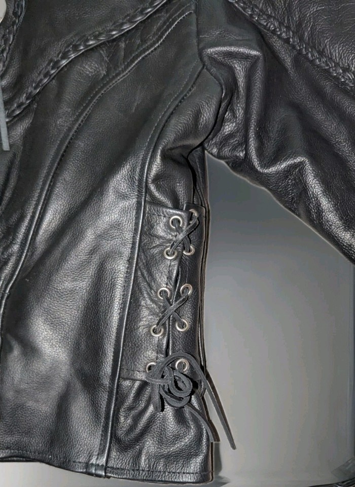 Bikers Leather Stuff Jacket Womens Small Black Thinsulate Motorcycle Lace Up Zip. Condition is Pre-owned - Excellent. Shipped with USPS Ground Advantage.