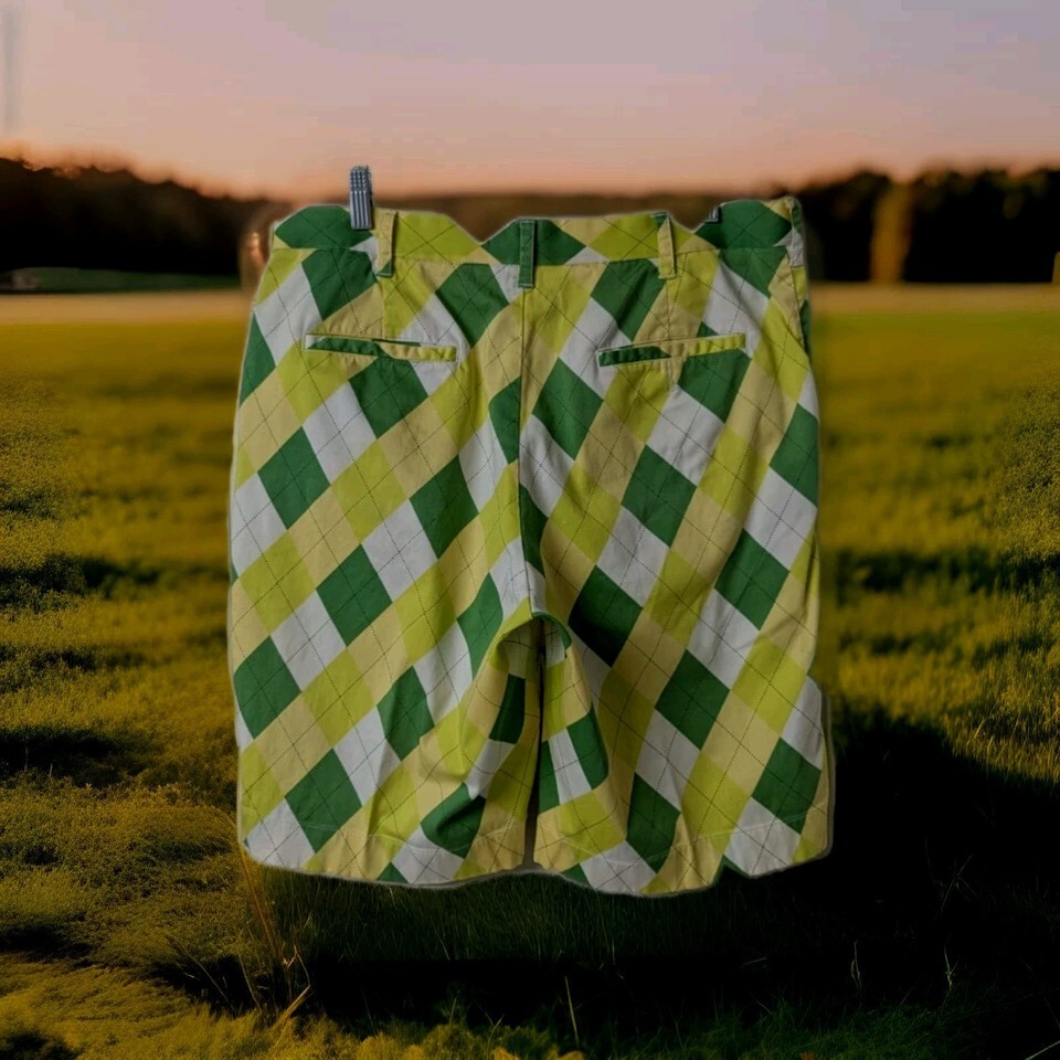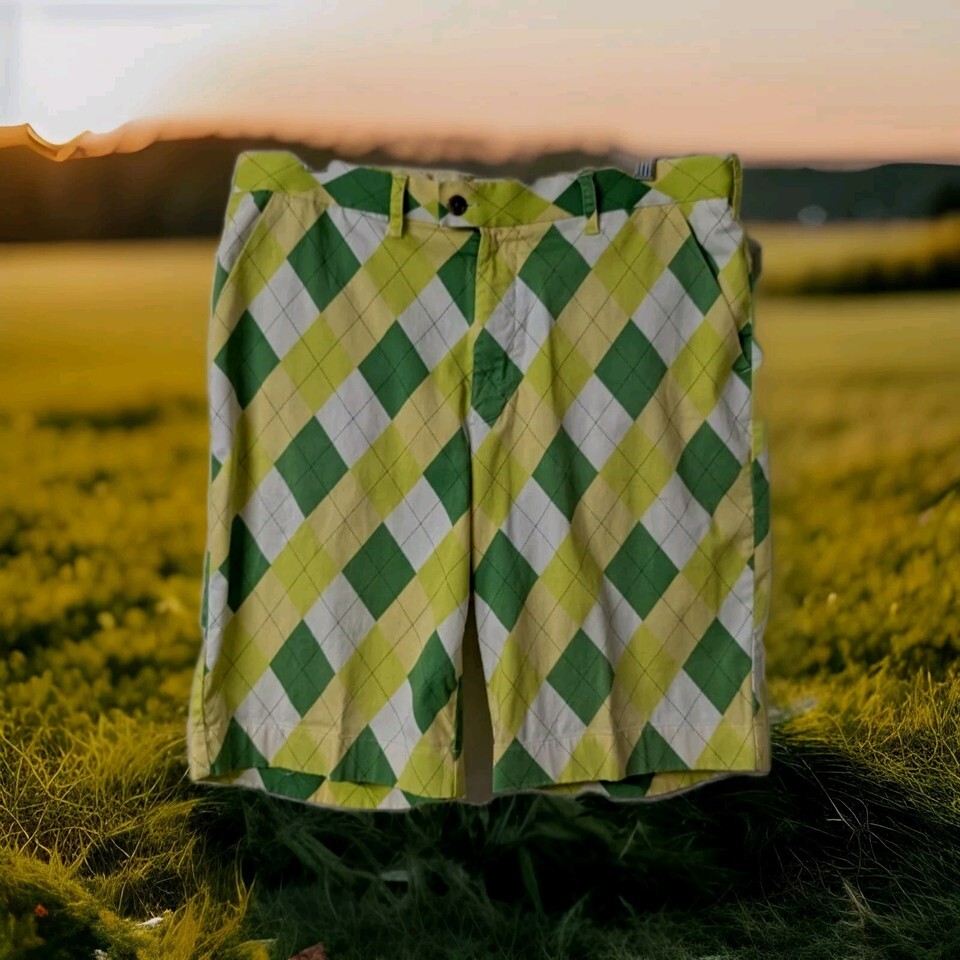 Loudmouth Men's 36? Green White Yellow Argyle Plaid Golf Shorts Colorful. Condition is Pre-owned - Excellent. Shipped with USPS Ground Advantage.