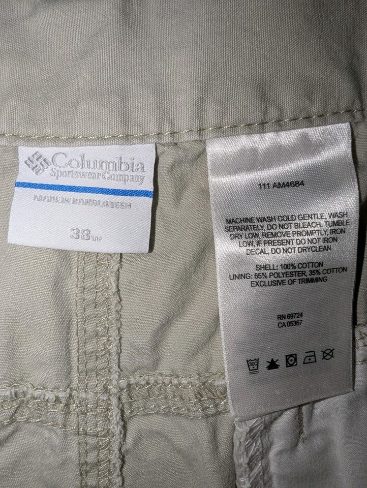 Columbia 5 pocket Stone Shorts Kahki Cargo Men's Size 38w. Condition is Pre-owned - Excellent. Shipped with USPS Ground Advantage.