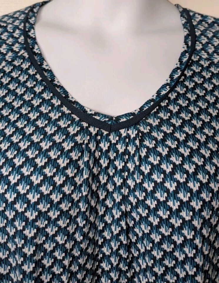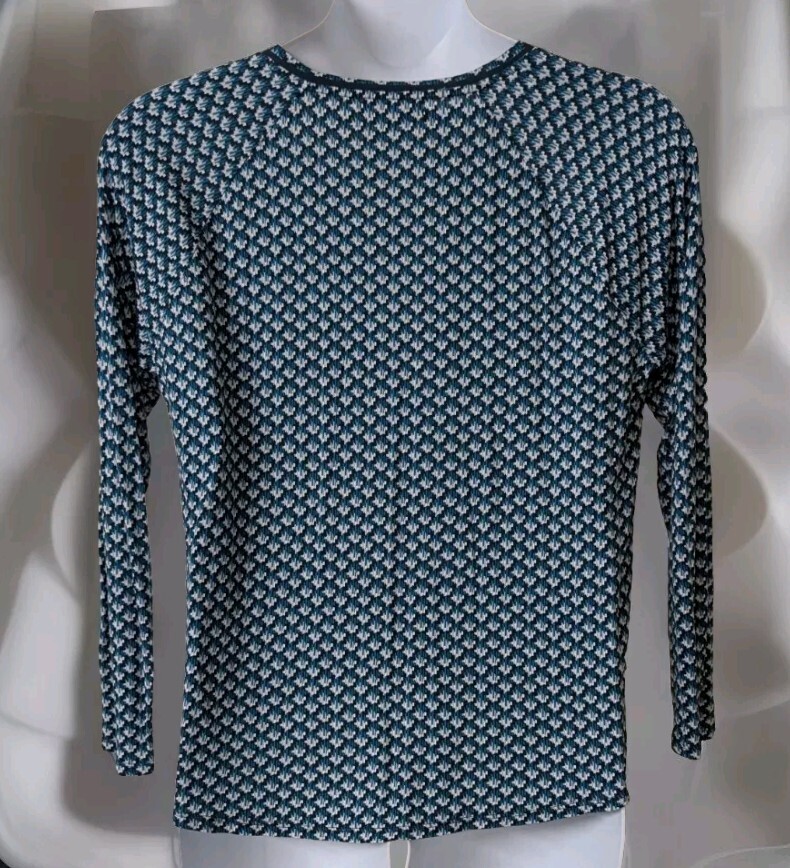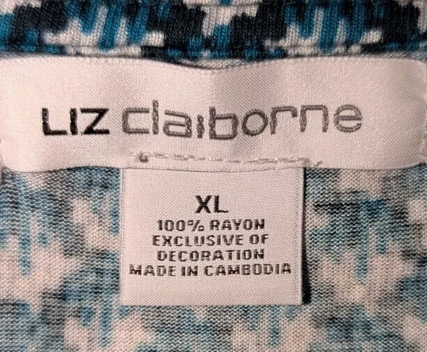 Liz Claiborne Career Top Womens Large Blue Green Design Preppy Slinky Fabric