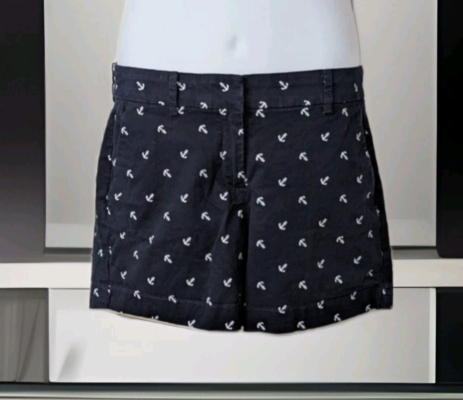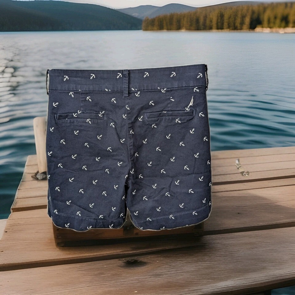 Nautica Bermuda Shorts Women?s Size 6 Navy Blue White Anchor All Over Print. Condition is Pre-owned - Excellent. Shipped with USPS Ground Advantage.