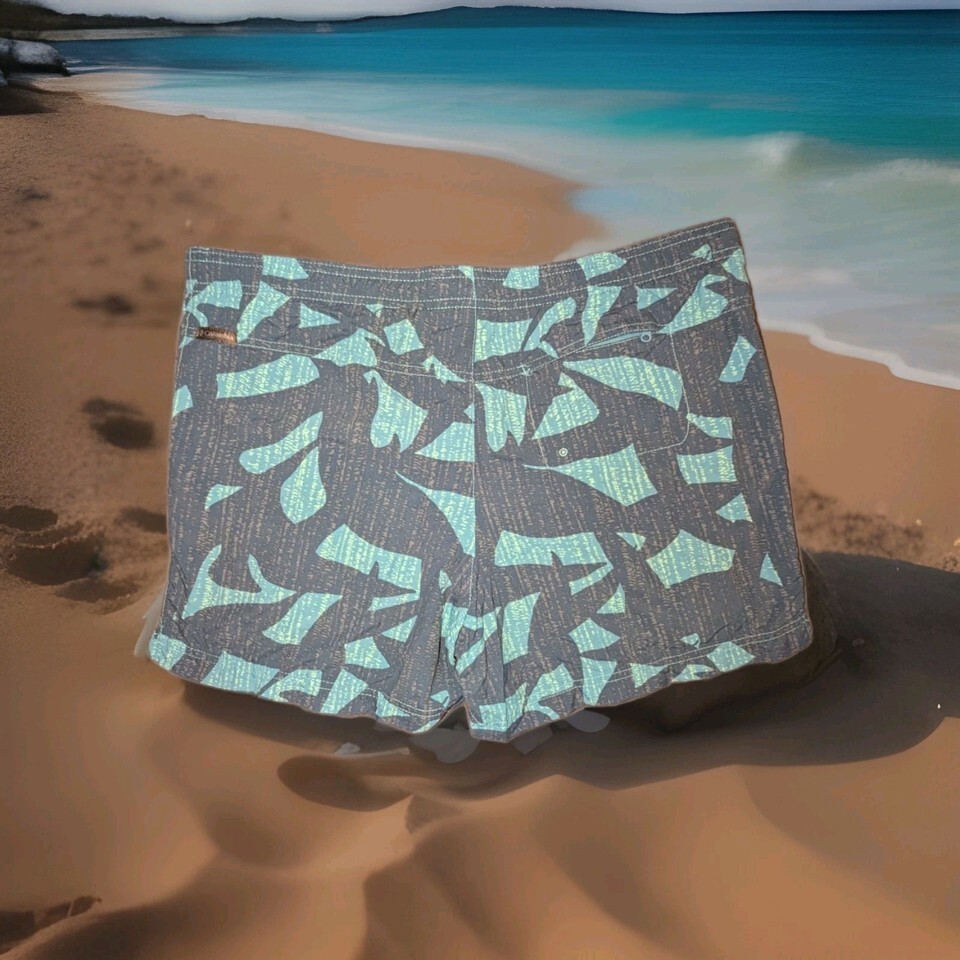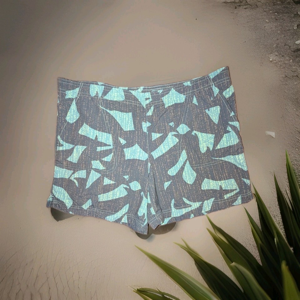 Columbia Women's Medium Blue Geometric Nylon Shorts Pull On Zippered Pocket. Condition is Pre-owned - Excellent. Shipped with USPS Ground Advantage.