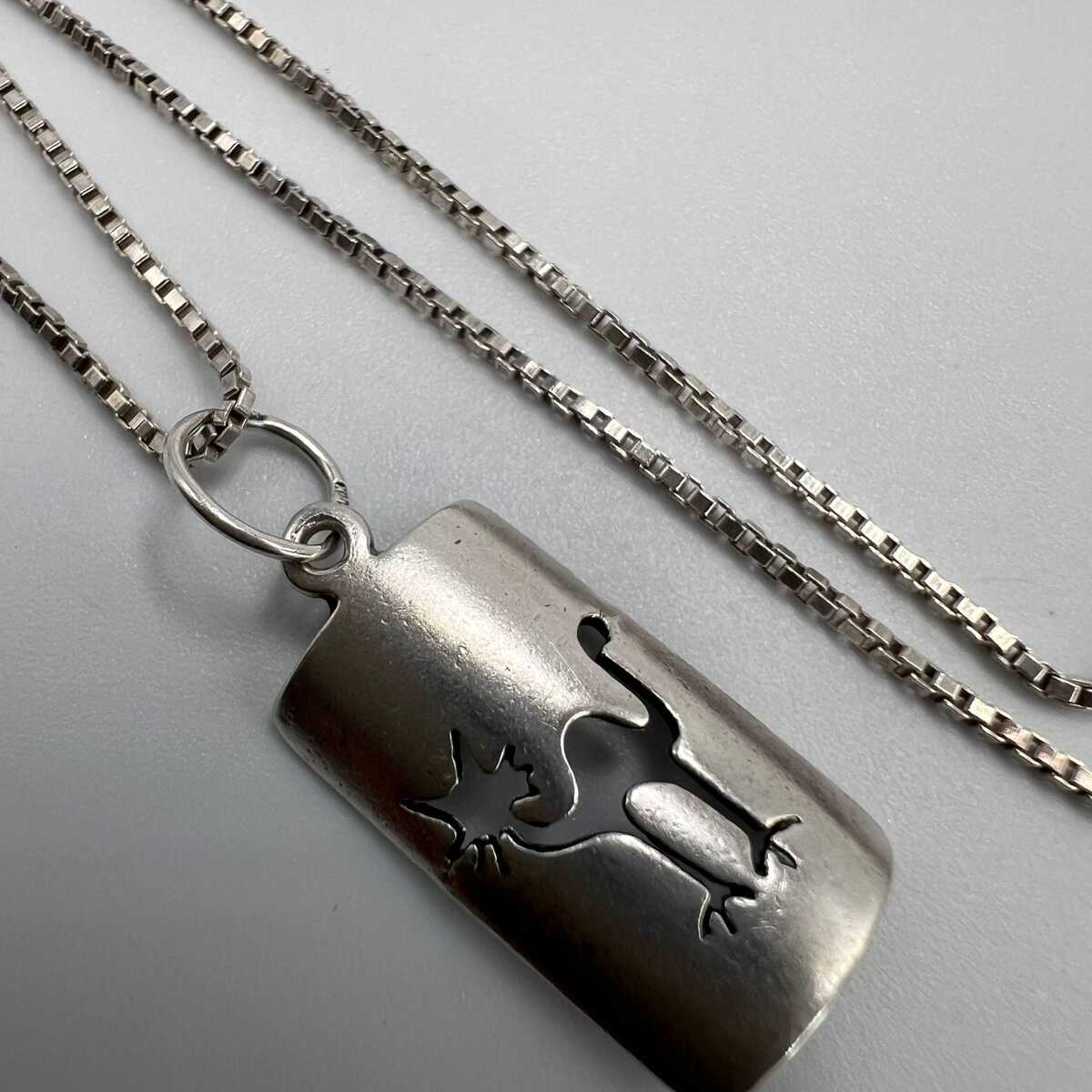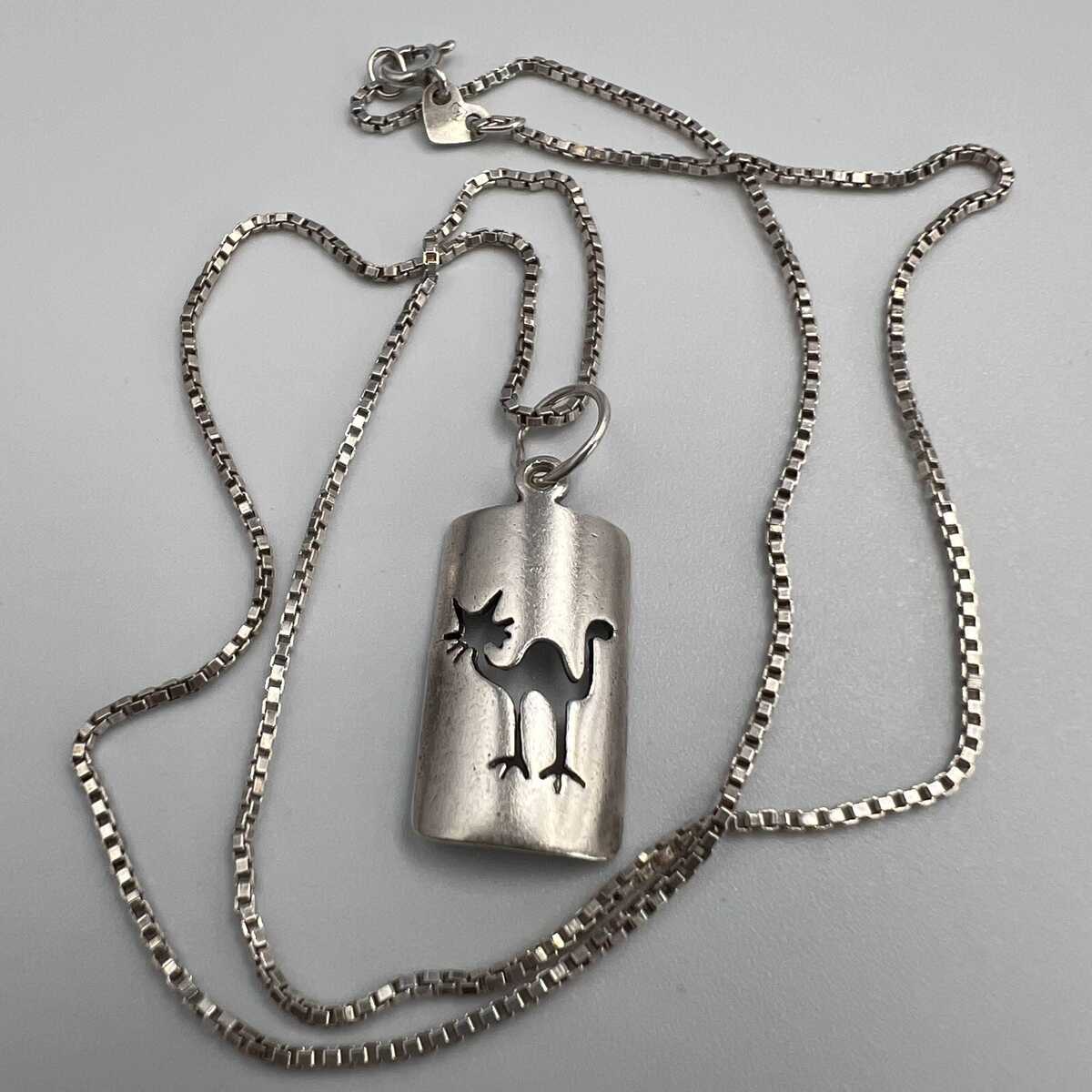 Vintage Beautiful Necklace Pendant Chain Cat Sterling Silver 925 Jewelry Women's 4.48gr