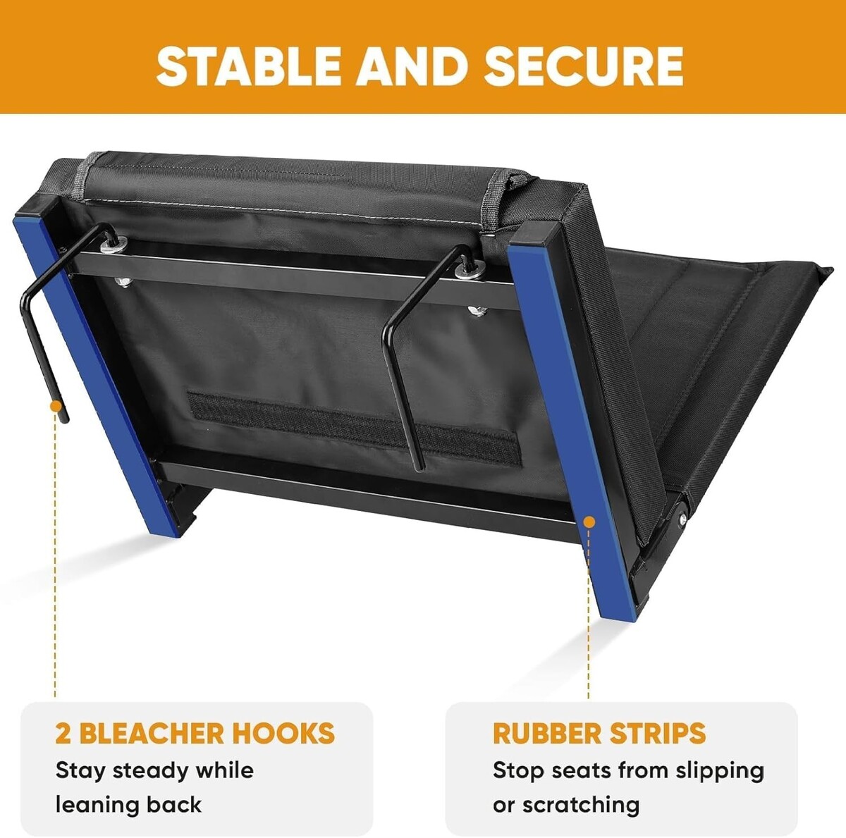 Wide bleacher chair comes with a padded backrest tube for enhanced support.