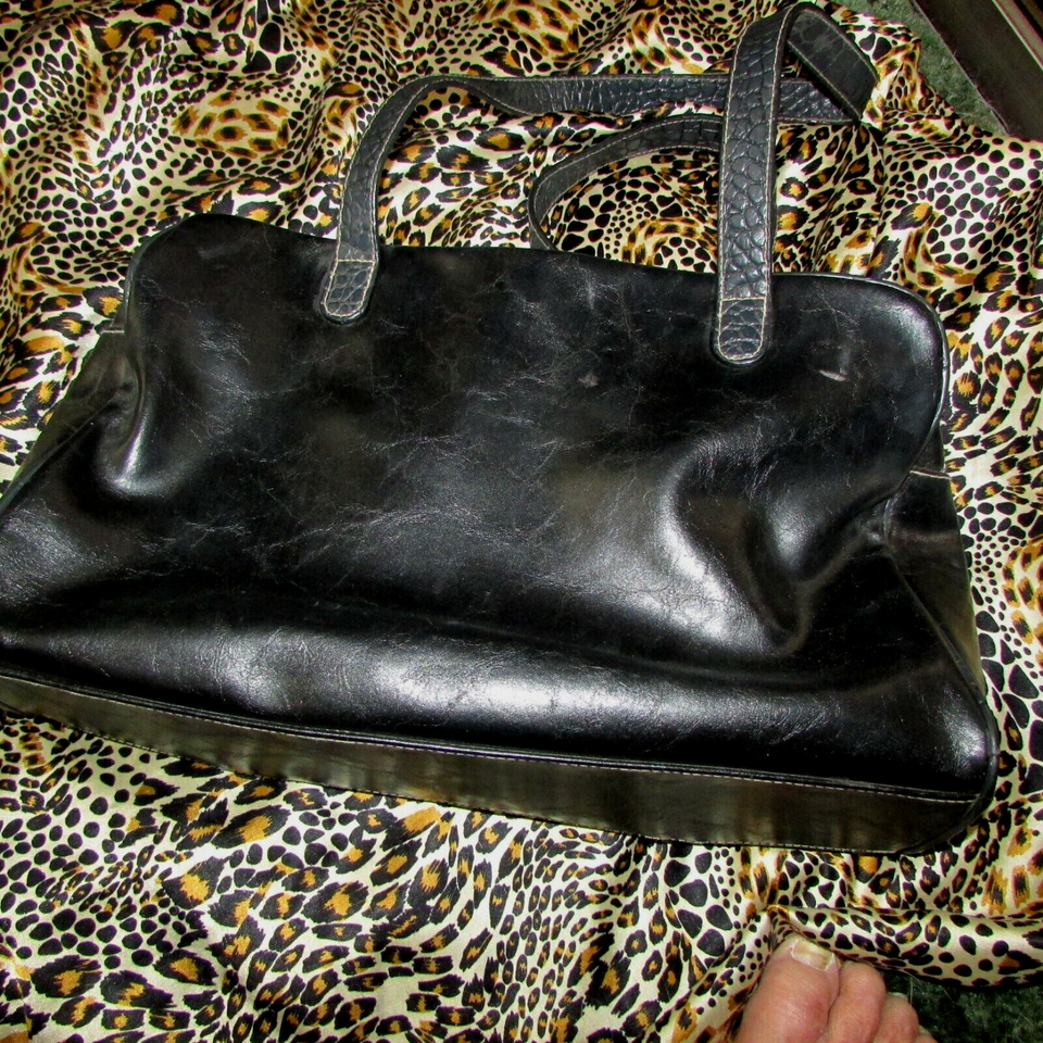 women's purse, handbag black 2 snap shut ends & 1 zippered main section w/more