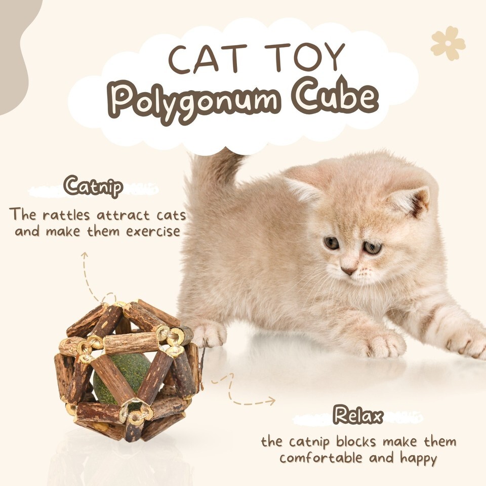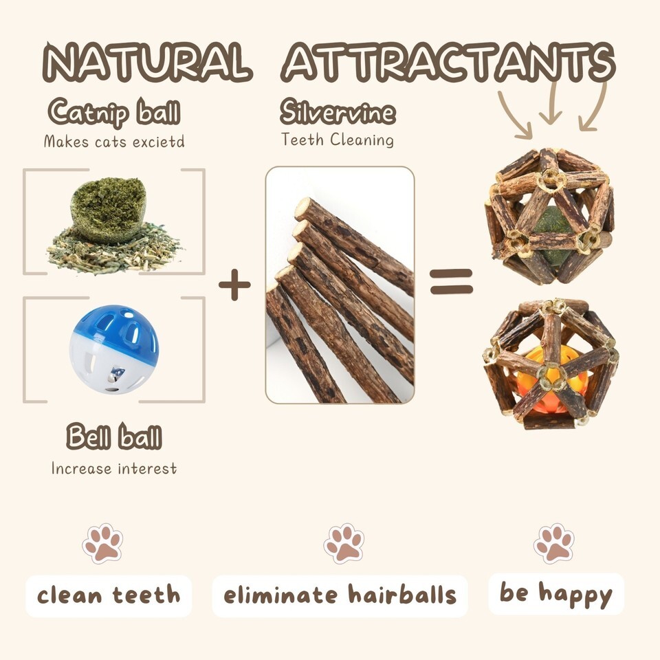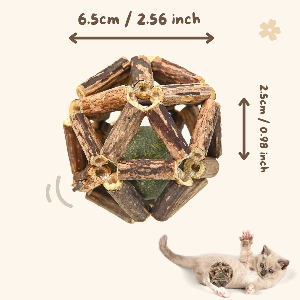 10 Natural Catnip & Silvervine Chew Sticks + 2 Pack Interactive Cage Ball Toy
