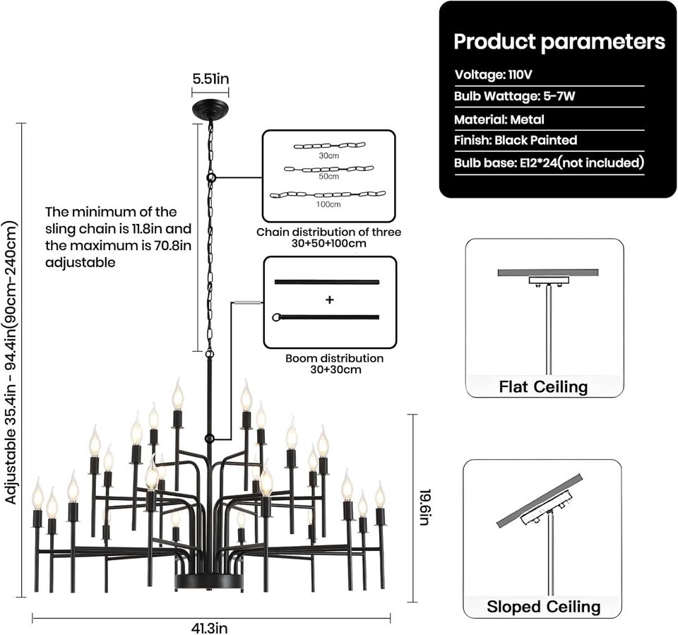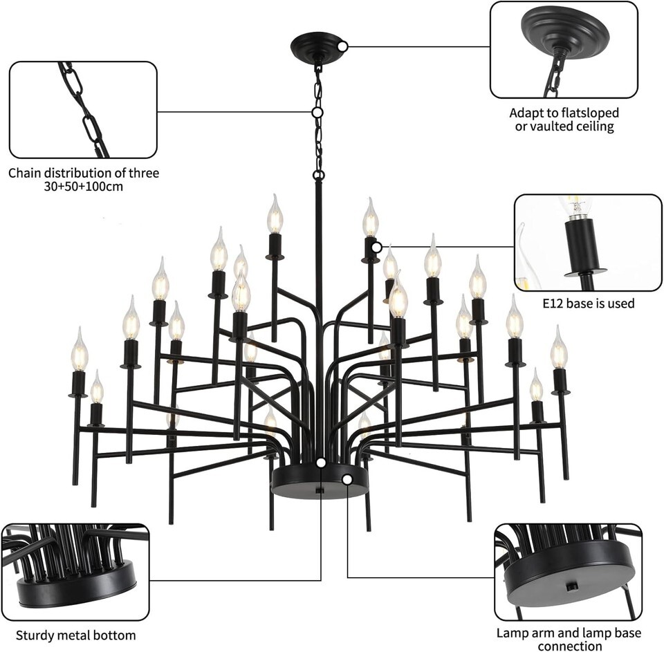 ZENGGP Black Sputnik Farmhouse Chandelier, Rural Industrial Candle Pendant 41 In