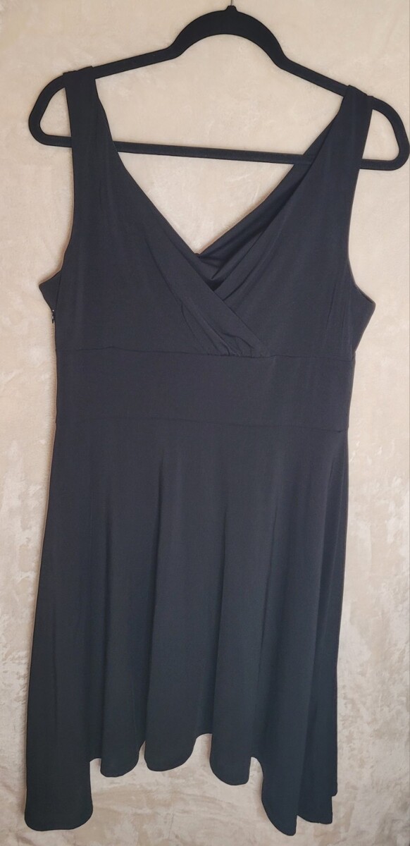 This Women's Kenneth Cole Jersey Knit Sleeveless Fit and Flare Cocktail Dress in size L is a versatile piece suitable for various occasions such as parties, weddings, or even formal events. The V-neckline and pullover closure make it easy to wear, while the knee-length design and stretch fabric provide a comfortable fit. Made from a blend of polyester and spandex, this black dress features a solid pattern and a flattering fit and flare silhouette, perfect for those who appreciate designer clothing with a touch of elegance. Ideal for the spring, summer, and fall seasons, this dress is a stylish choice for any woman's wardrobe.
