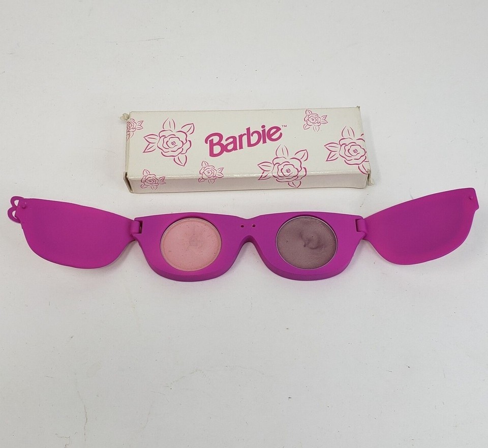 VINTAGE 1996 MATTEL BARBIE AVON PINK SUNGLASSES CREAM EYESHADOW PALLET IN BOX