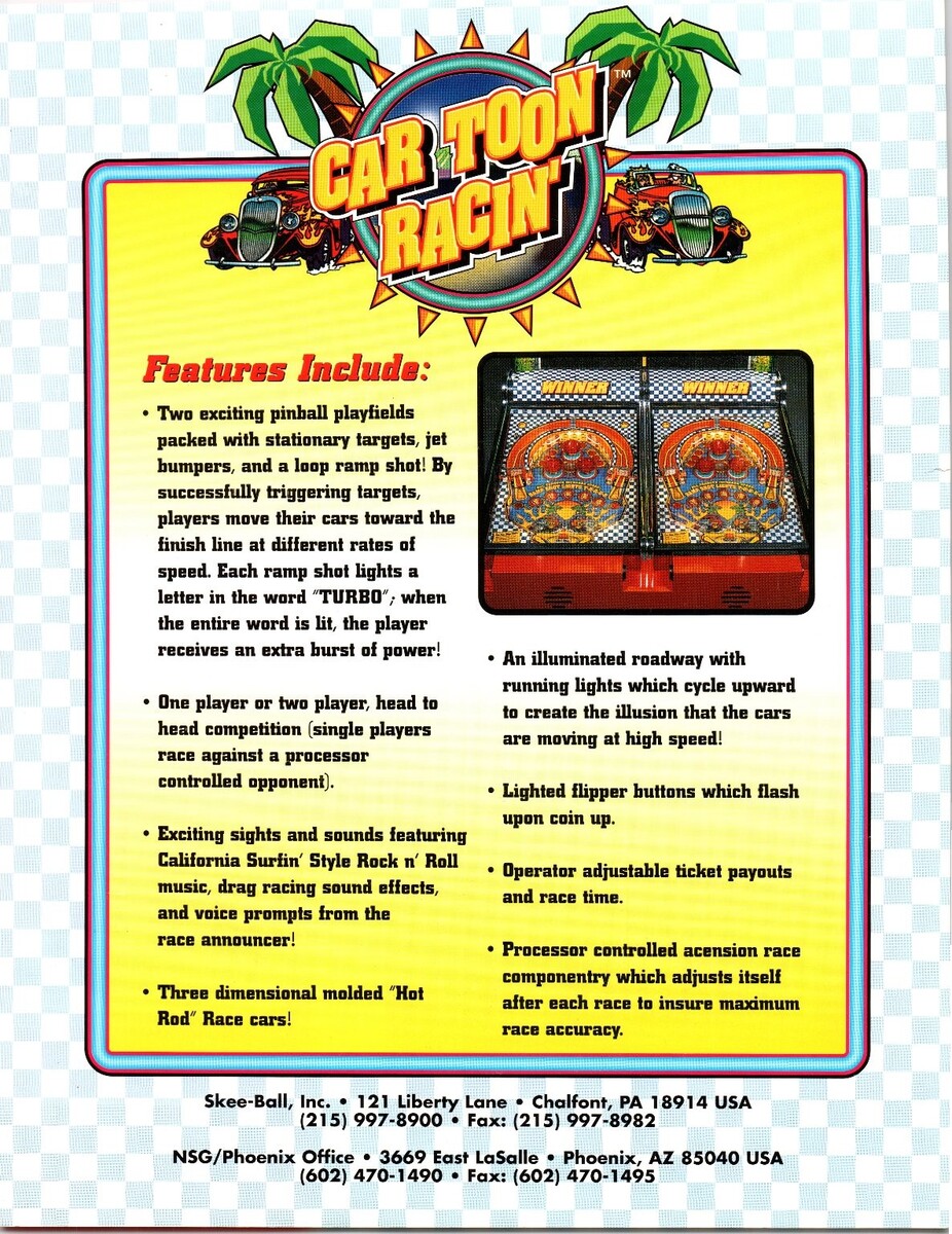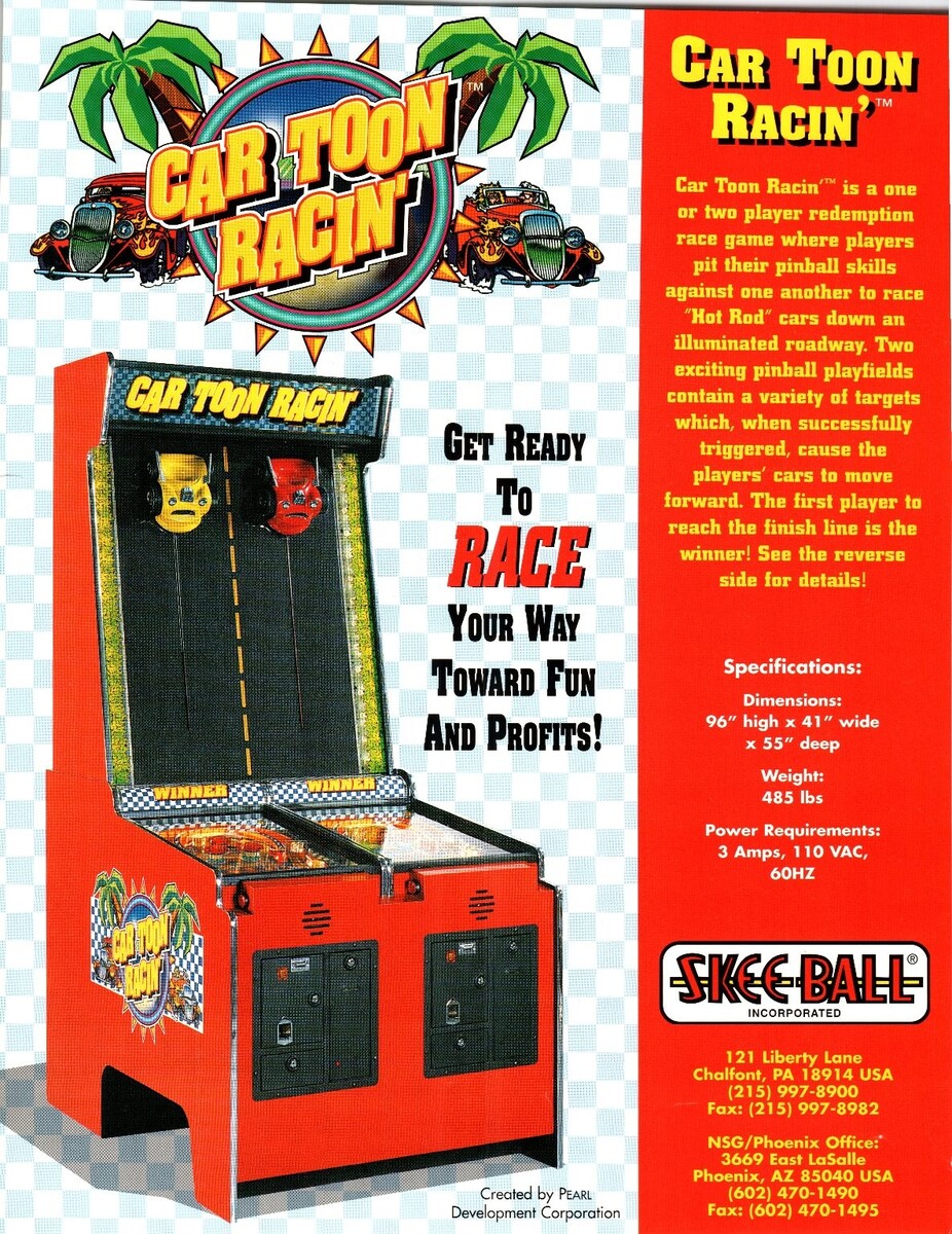 Car Toon Racin' 1990s Skee-Ball Arcade Game Flyer Pinball Race