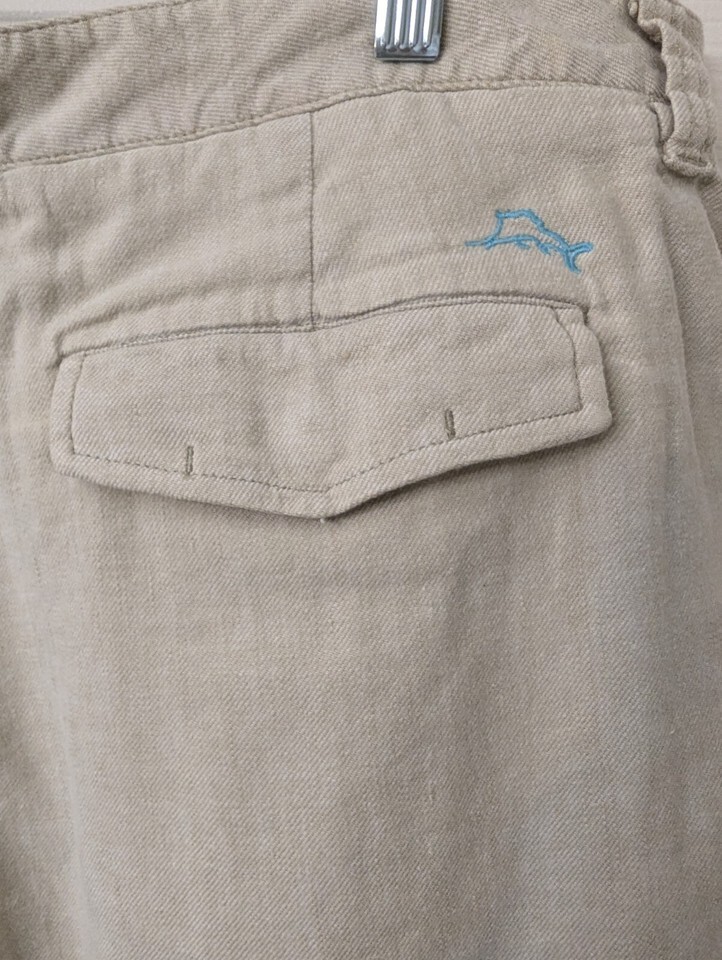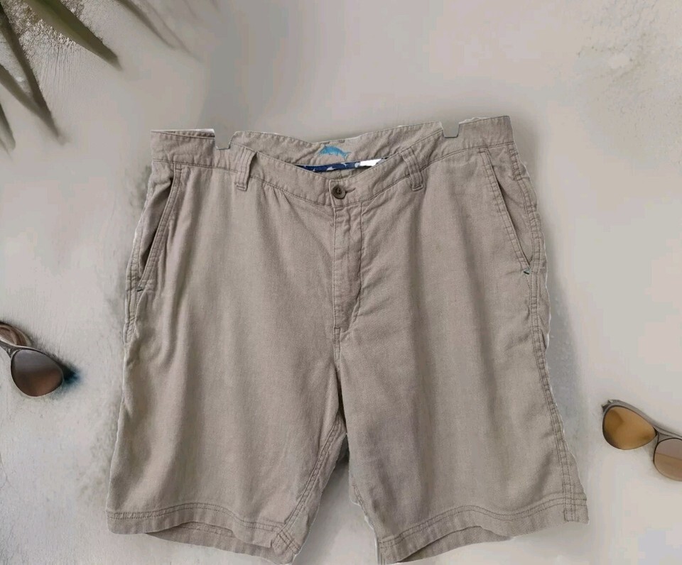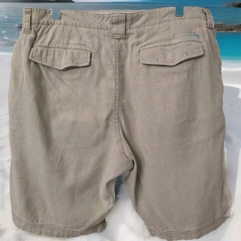 Tommy Bahama Shorts Size 38 Chino Beige Linen Blend Flat Front Men's Casual