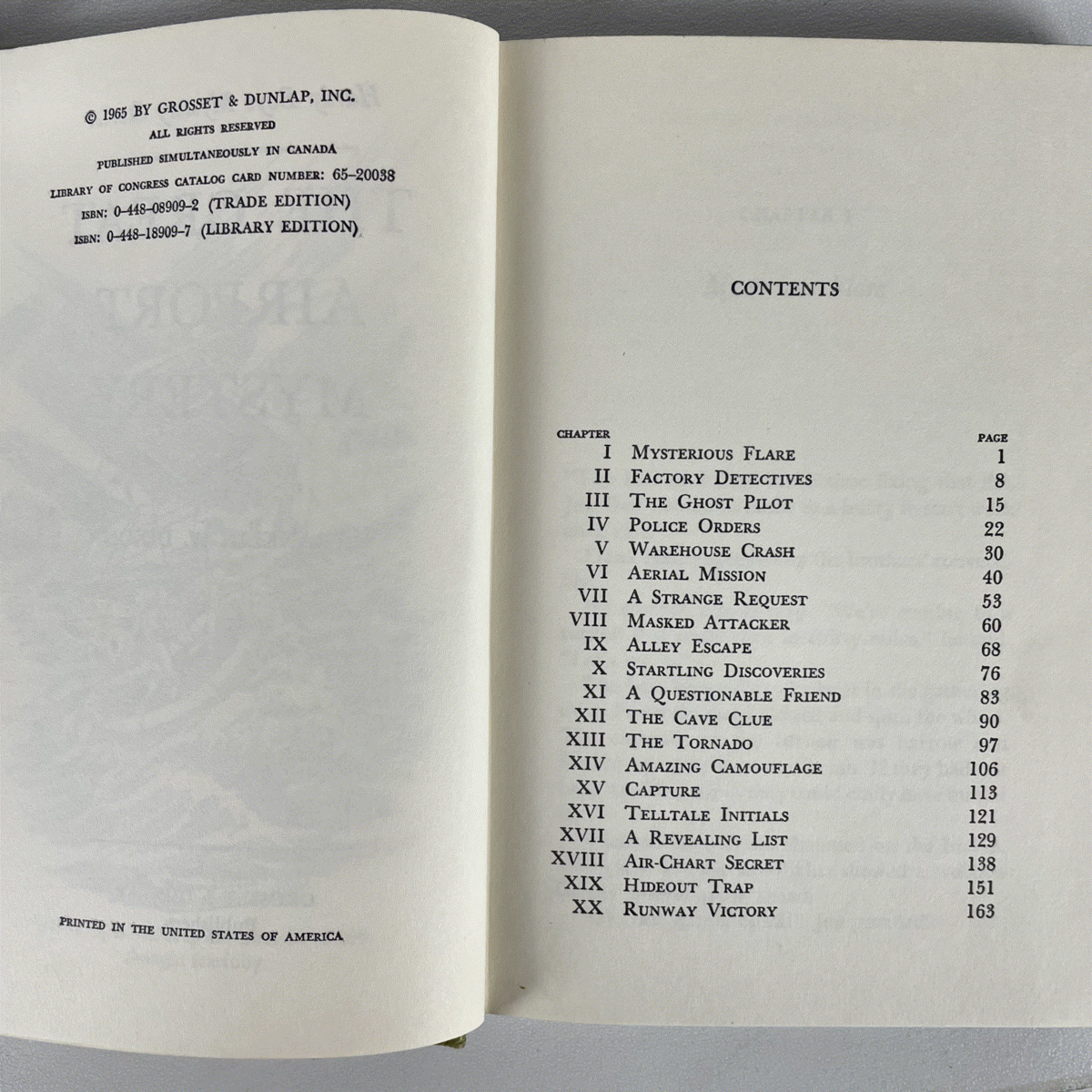 Embark on a thrilling adventure with the Hardy Boys in "The Great Airport Mystery," Book 9 of the iconic series by Franklin W. Dixon. This vintage hardcover edition, published by Grosset Dunlap, invites readers into a classic tale of intrigue and suspense centered around the world of aviation. Join Frank and Joe Hardy as they unravel puzzling clues and confront dangerous adversaries in a high-stakes investigation that will keep you guessing until the very end. A must-have for collectors of vintage children's literature and fans of detective fiction.