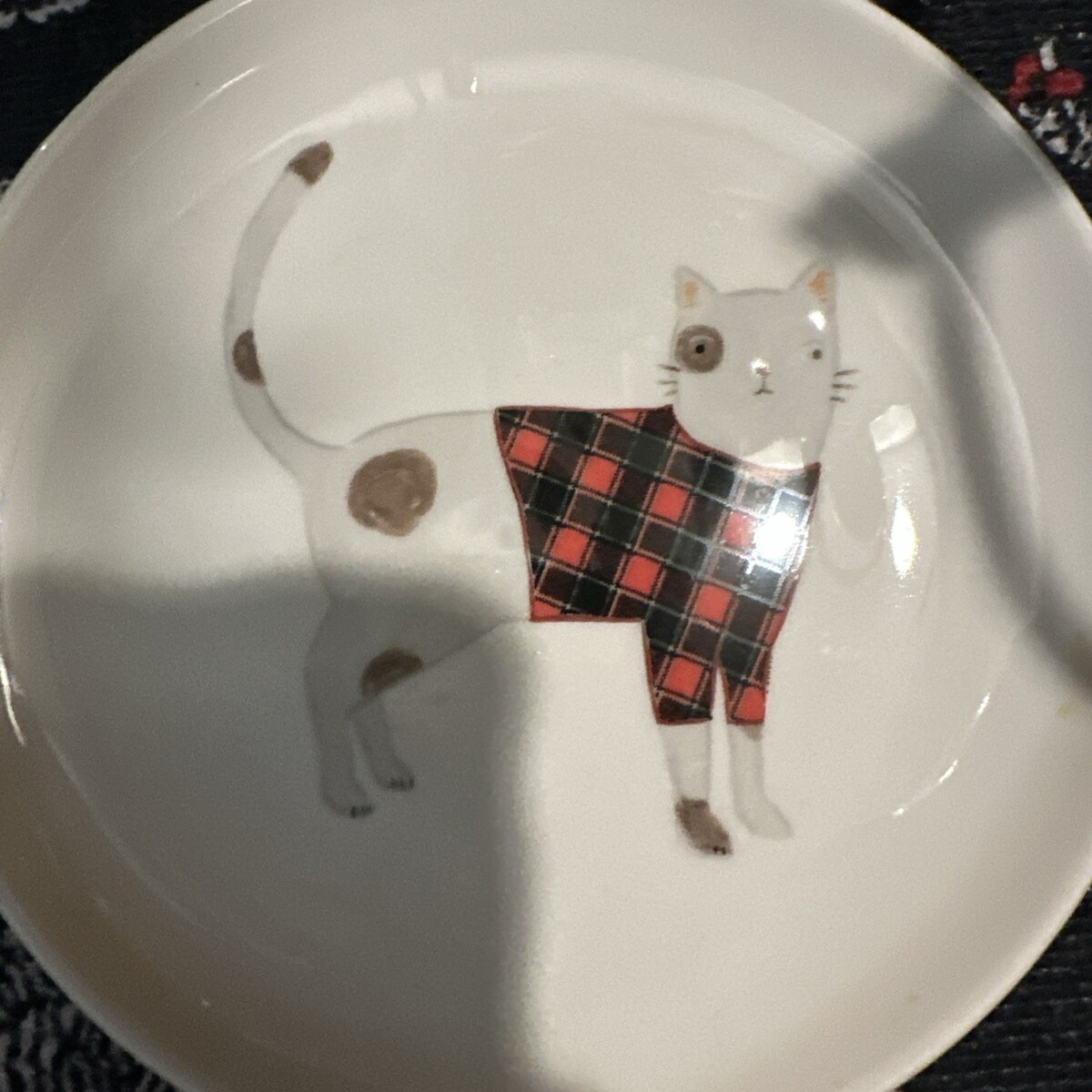 Magenta Brand Rae Dunn 4pc Set Dapper Fun Cats Pattern 6“ Ceramic Plates New