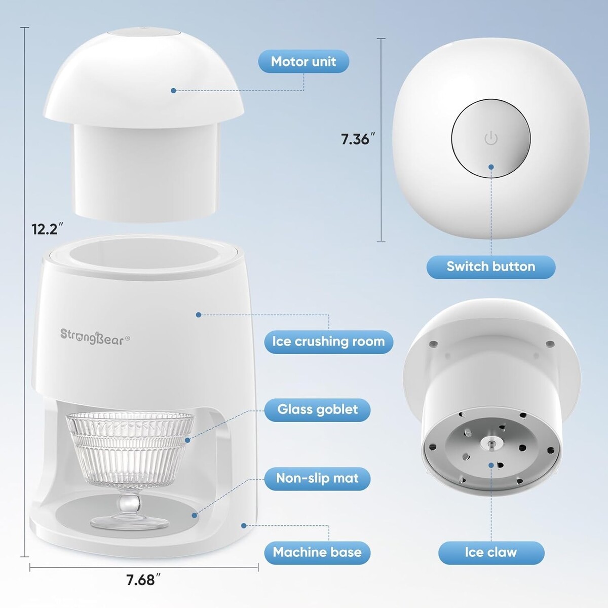 Easy to use ? no complicated assembly; simply press a switch to start shaving ice!