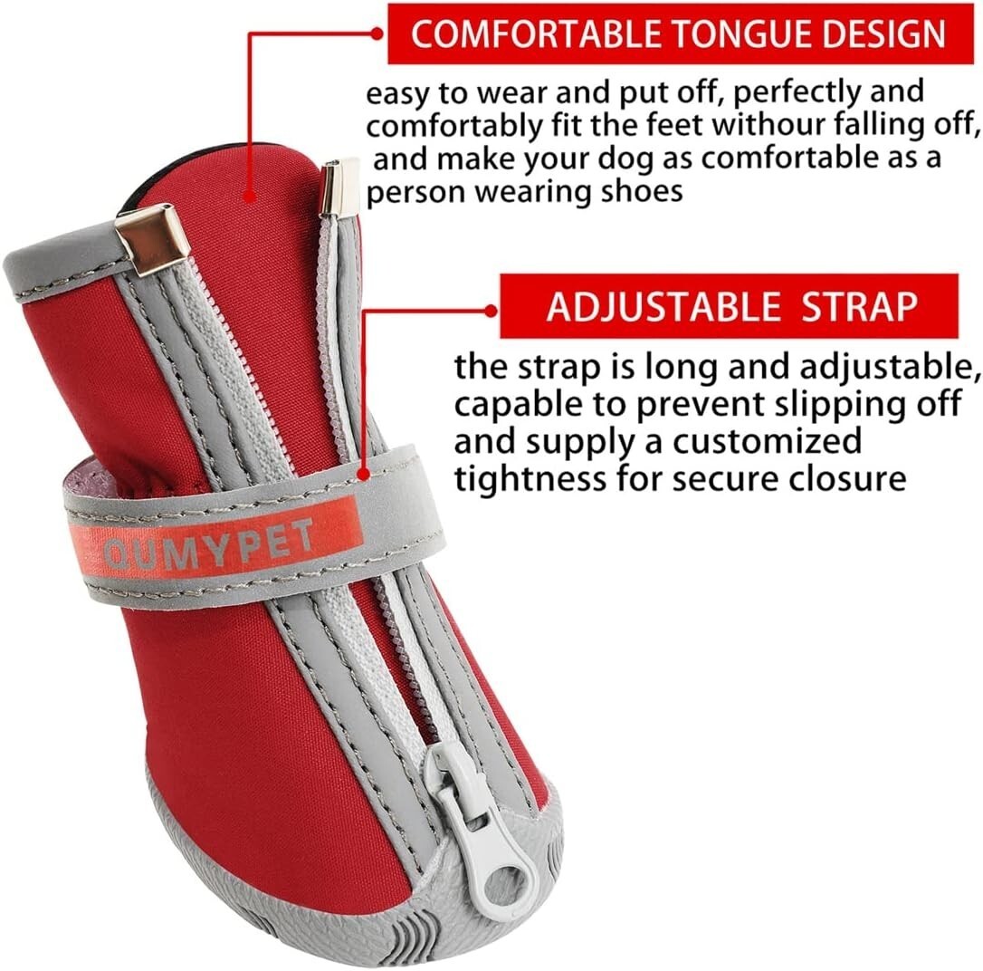 Elevate your dog's outdoor adventures with our exquisite waterproof dog shoes designed specifically for small breeds. The innovative zip and self-adhesive strap design ensures a comfortable, snug fit, while the skid-resistant soles provide impeccable traction and stability. Let your little companion explore the world without the worry of muddy paws or hot surfaces!