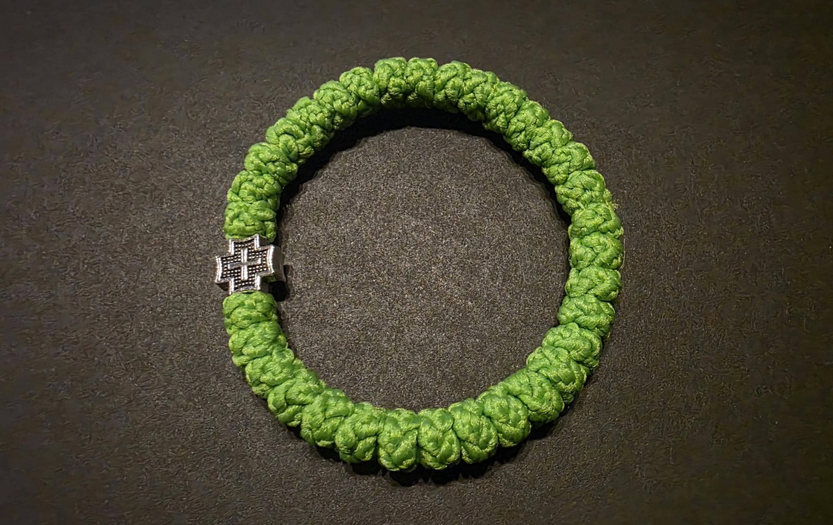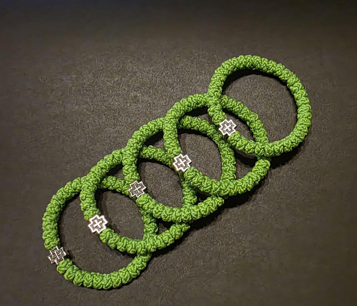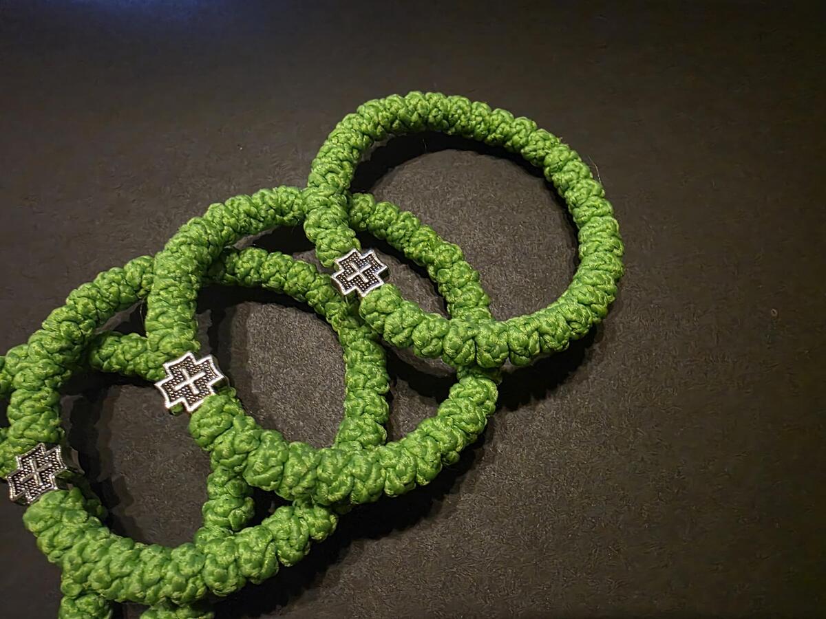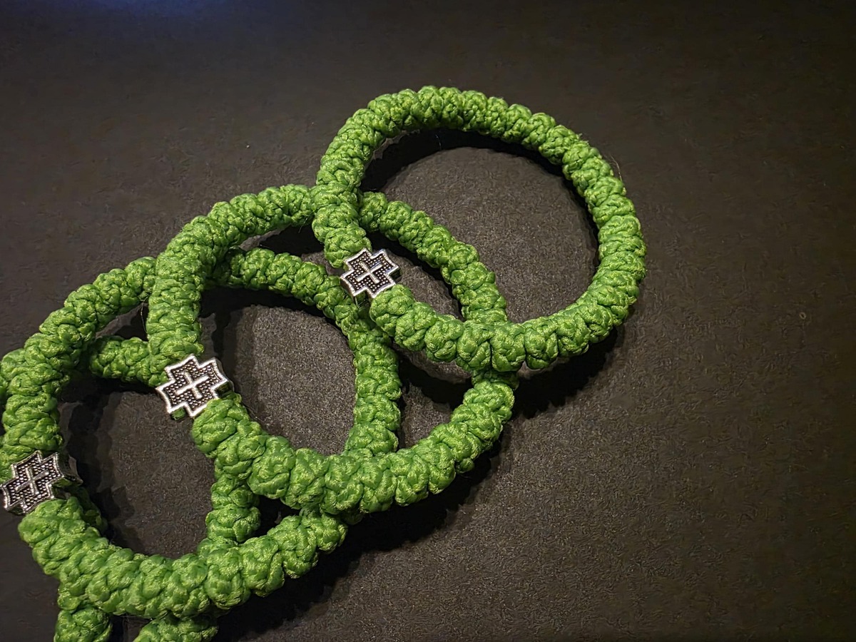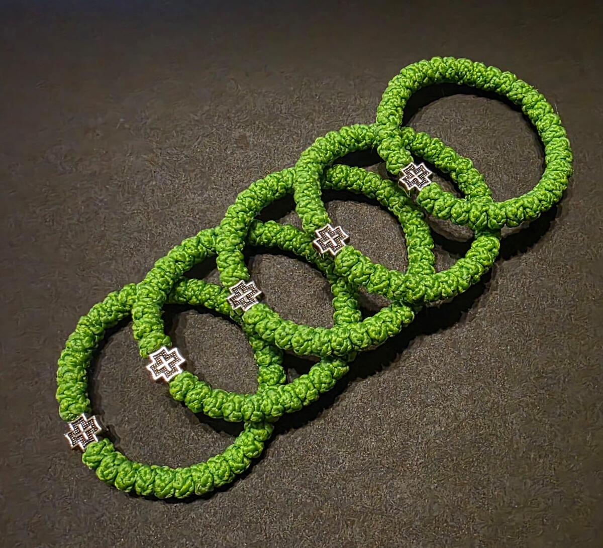 A handmade orthodox Christian prayer rope, bracelet prayer rope in green color. The size of the prayer rope is 33 knots. Completely handmade 33 thick knots every each of them finished with a prayer. The prayer rope is made of high quality waxed wool thread. The waxed thread ensures water resistance and durability.