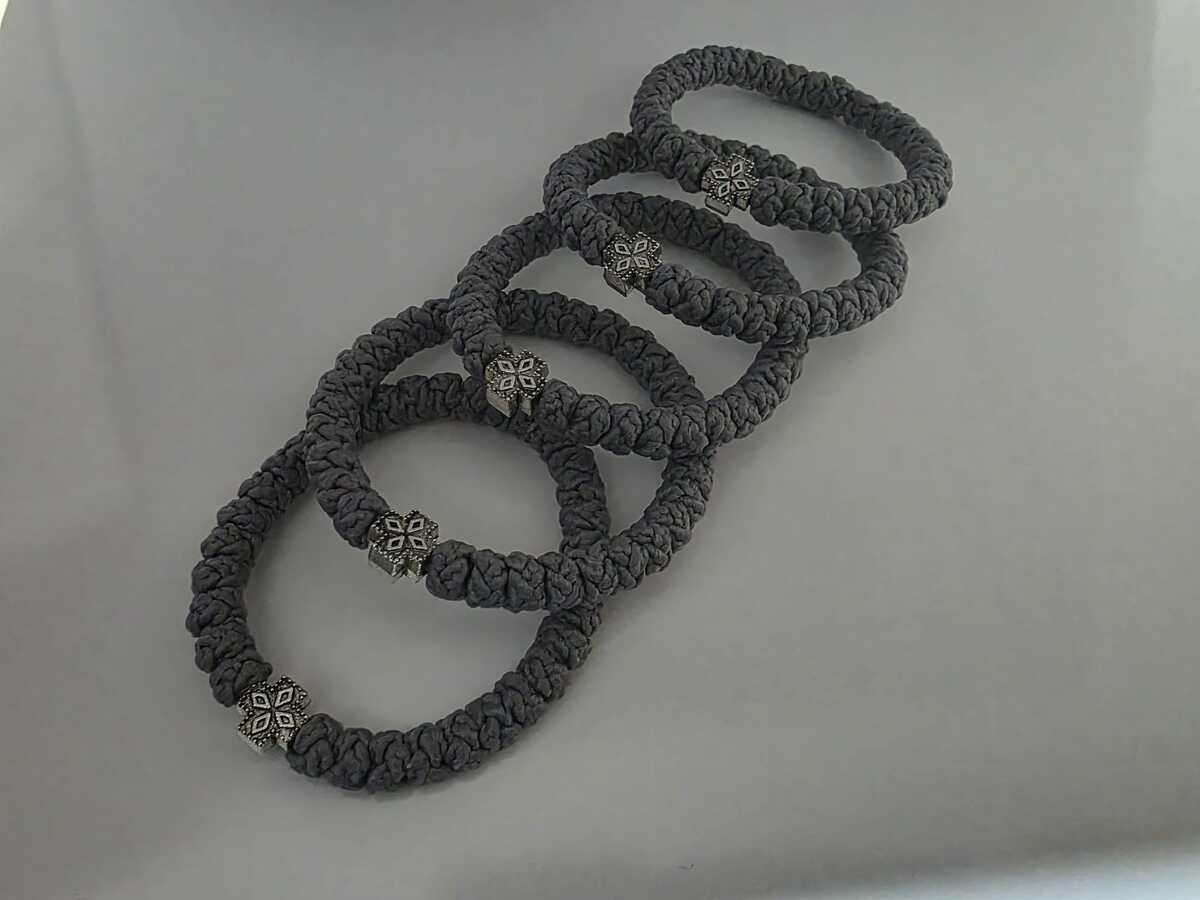 A handmade orthodox Christian prayer rope, bracelet prayer rope in gray color. The size of the prayer rope is 33 knots. Completely handmade 33 thick knots every each of them finished with a prayer. The prayer rope is made of high quality waxed wool thread. The waxed thread ensures water resistance and durability.