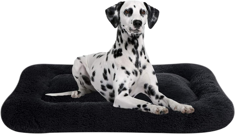Deluxe Plush Dog Bed Pet Cushion Crate Mat Anti-Slip Washable Pad(X-Large, Black)