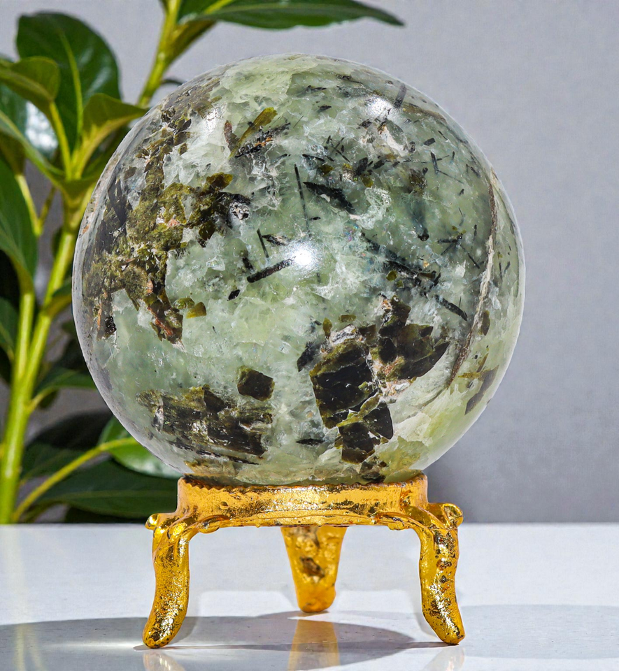 Druzy Verde PREHNITE Cristal Esfera Curación Piedra Metafísica Decoración...