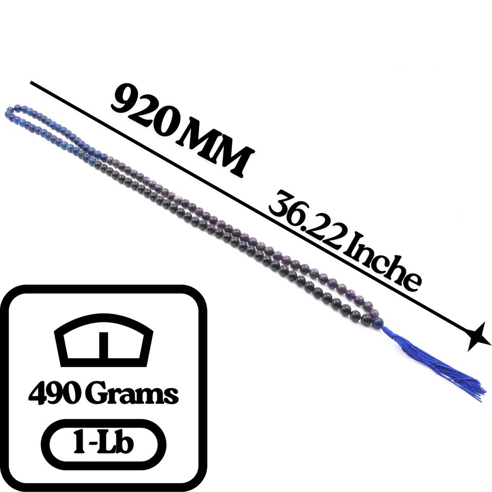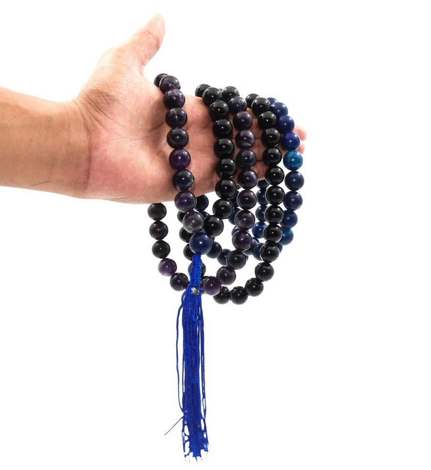 Collar Natural 108 Cuentas Mala - Turmalina Lapislázuli Amatista 14MM...