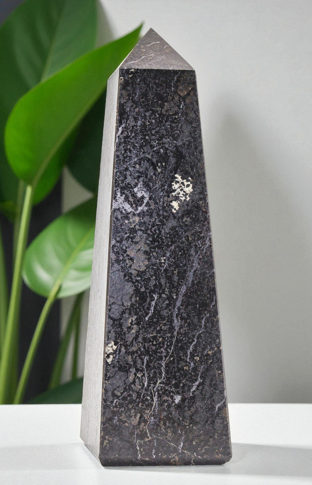 Magnífico Negro NUUMMITE Torre de Cristal Varita de Curación Reiki Piedra...