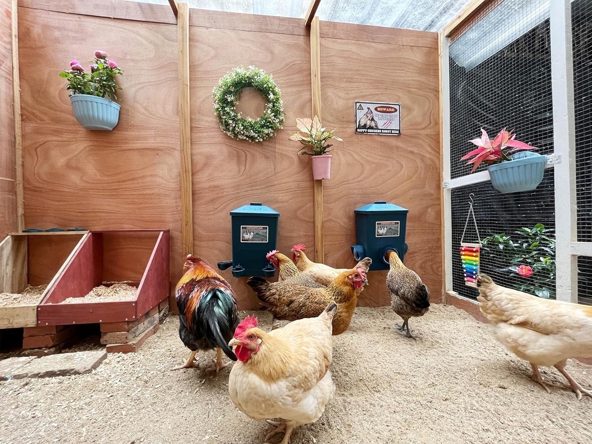 Watering System: The chicken cup waterer holds up to 3 gallons of fresh, clean water, ensuring your flock has constant access.