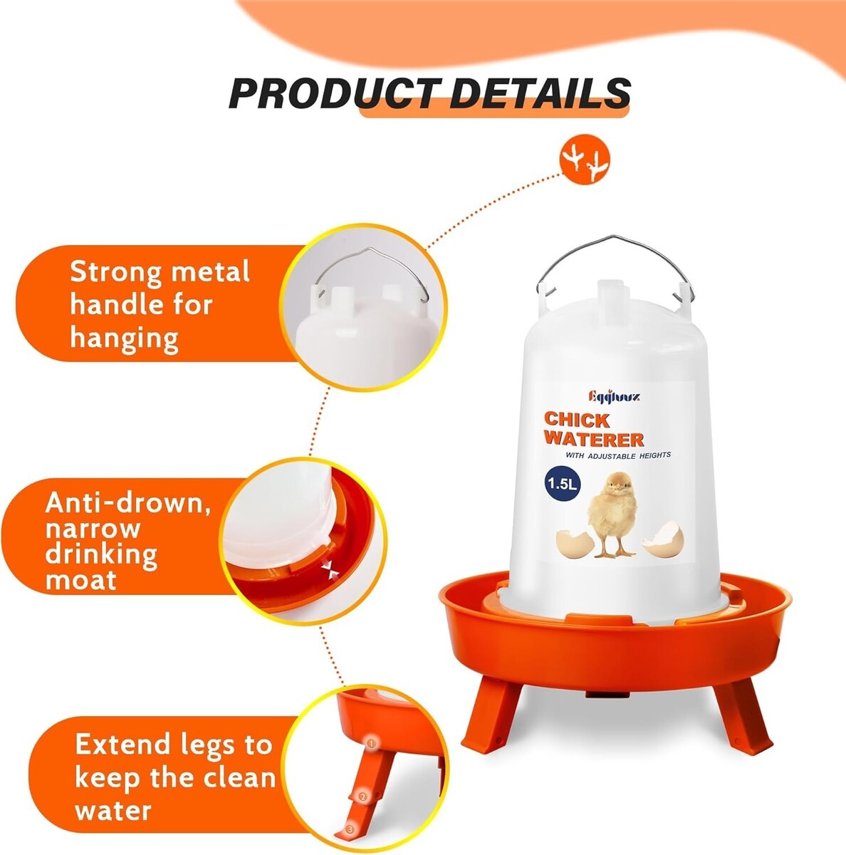 For Different Ages: This kit adjusts to varying heights, perfect for chicks of all ages. Additionally, use the strong steel handle for hanging options, enhancing convenience.