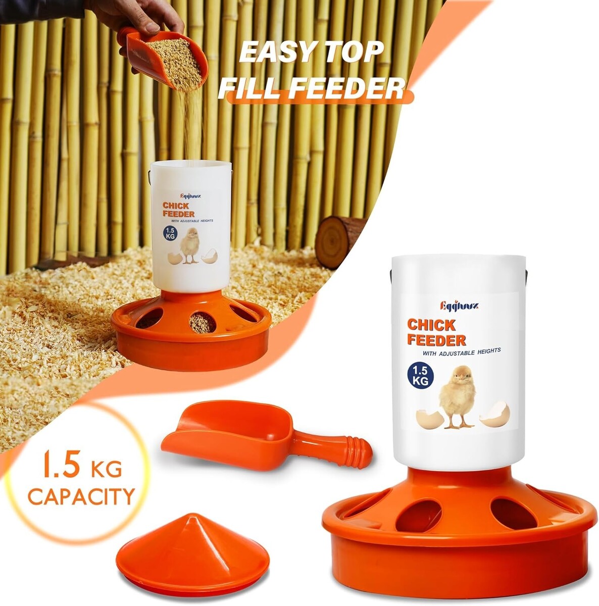 Designed for the discerning poultry enthusiast, this Top Fill Chick Feeder Waterer Kit not only simplifies feeding but promotes the health and happiness of your chicks. With its easy top fill feature, adjustable height settings, and anti-tip design, it is tailored to meet the evolving needs of your growing chicks.