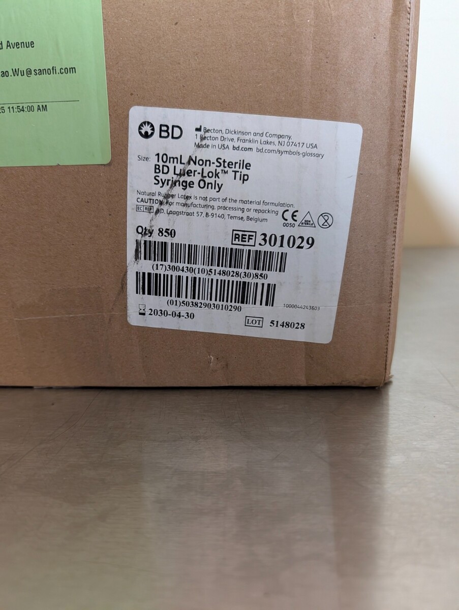 This BD 301029 Non-Sterile 10mL Luer-Lok is new, unused condition and is guaranteed to be fully functional. These boxes came from a local lab that had surplus overstocked inventory. Please feel free to contact us with any questions.