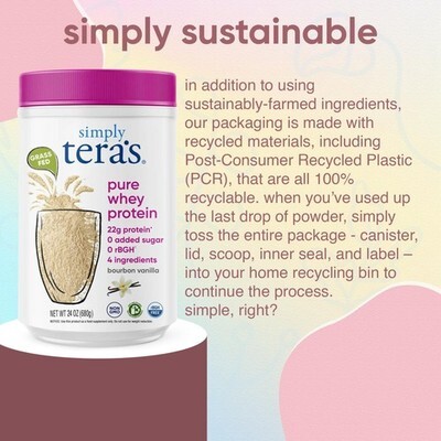 9/26 Simply tera's Pure Whey Protein Powder - Grass Fed Vanilla Whey Protein Powder, Clean, Made Without Artificial Sweeteners, Non-GMO, Kosher, rBGH-Free, Soy-Free - 24 Oz