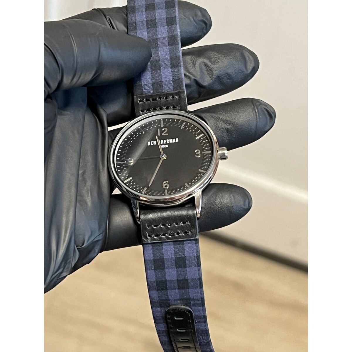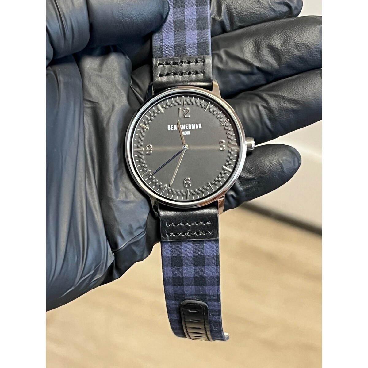 Ben Sherman London Men Watch Black Dial Gingham Blue Black Leather Strap Oi! GBH