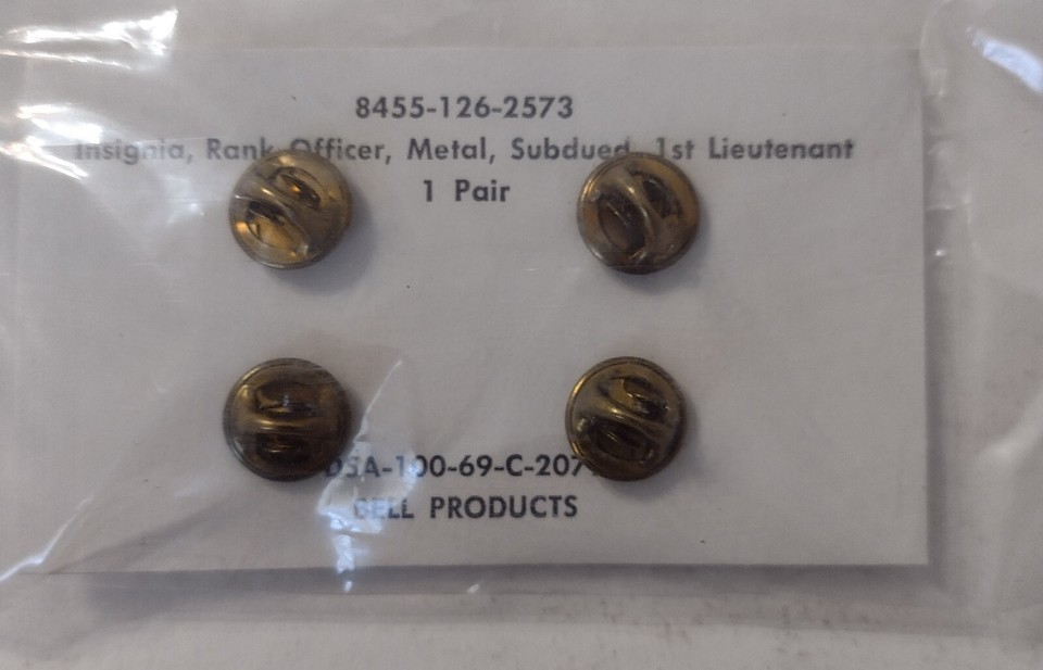 ARMY FIRST LIEUTENANT COLLAR INSIGNIA SUBDUED NIP DATED 1969 PAIR