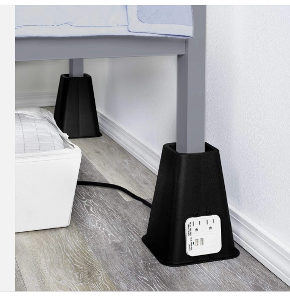 Richards Homewares 190110 Riser Bed Risers with USB Ports and Outlets, Black
