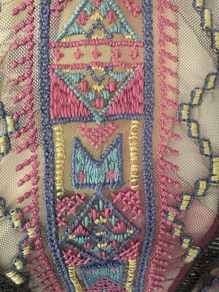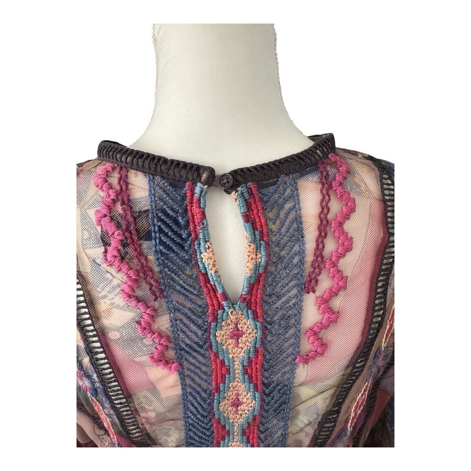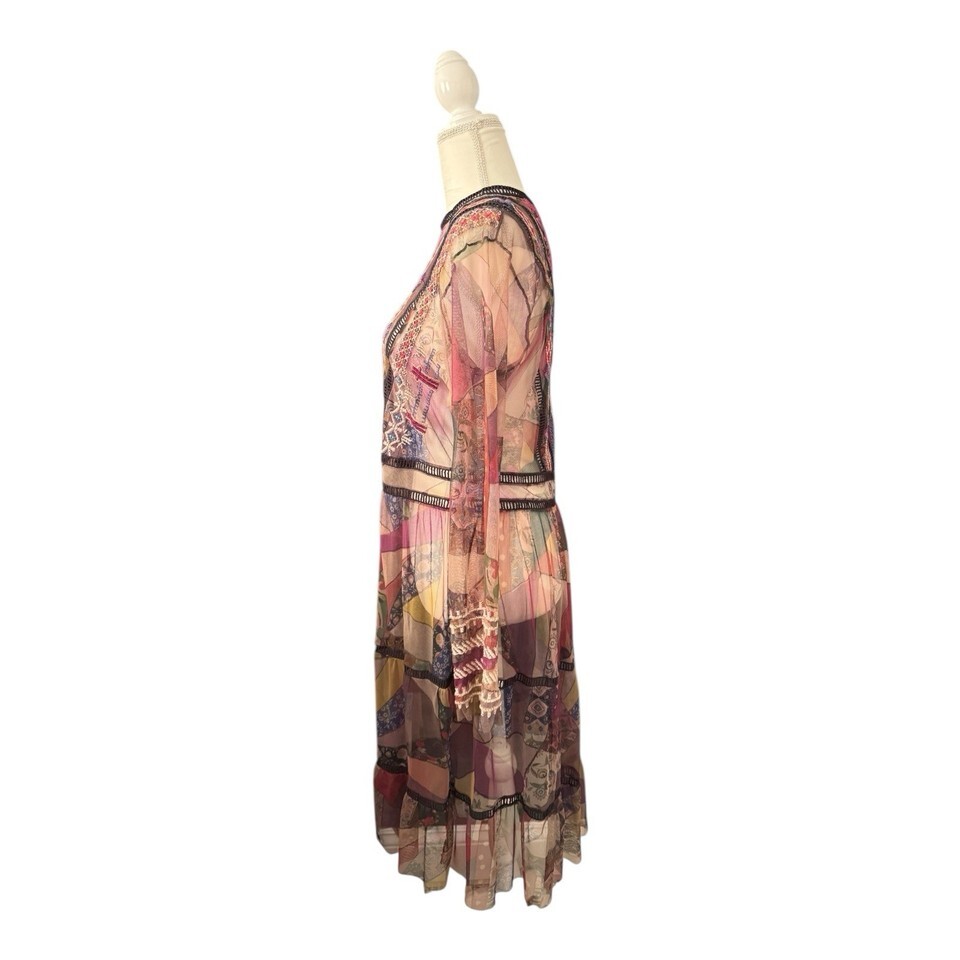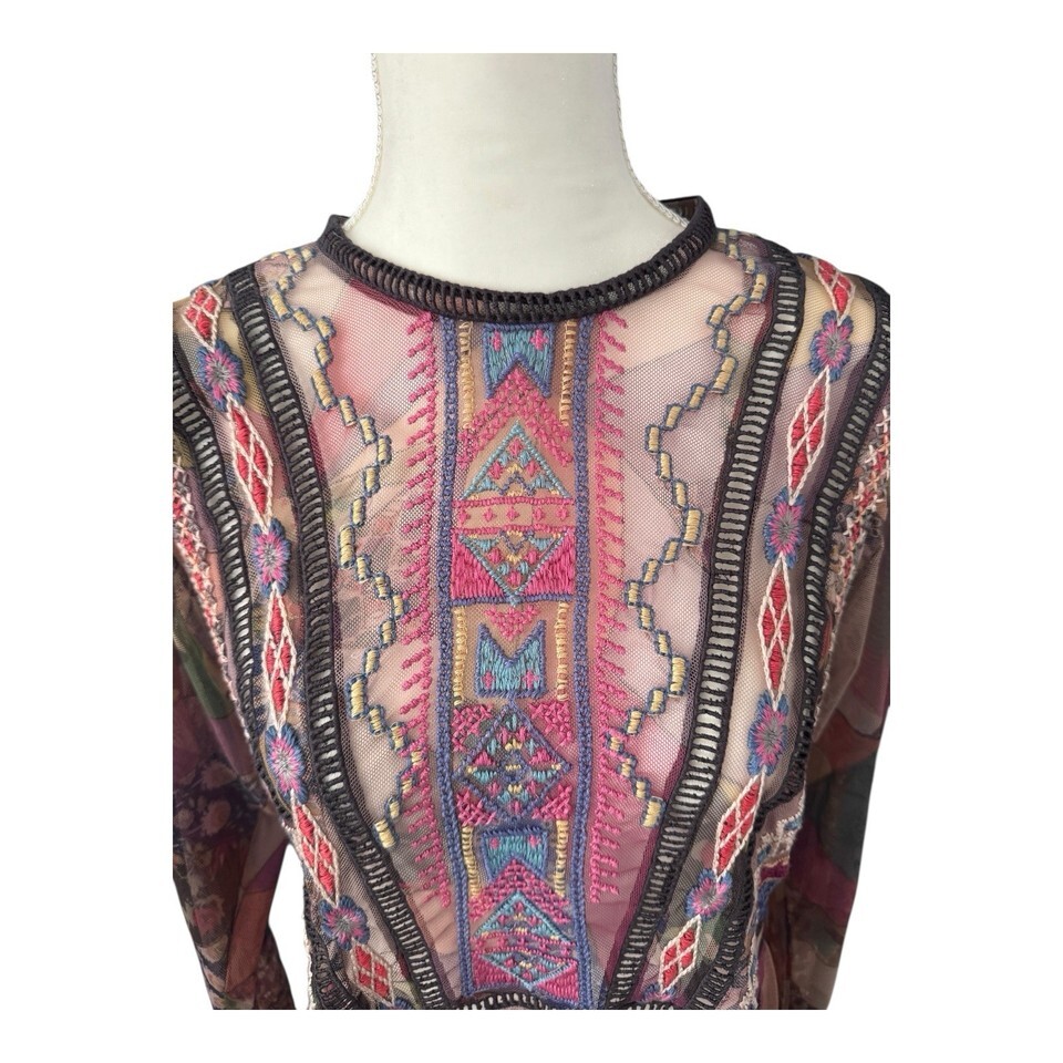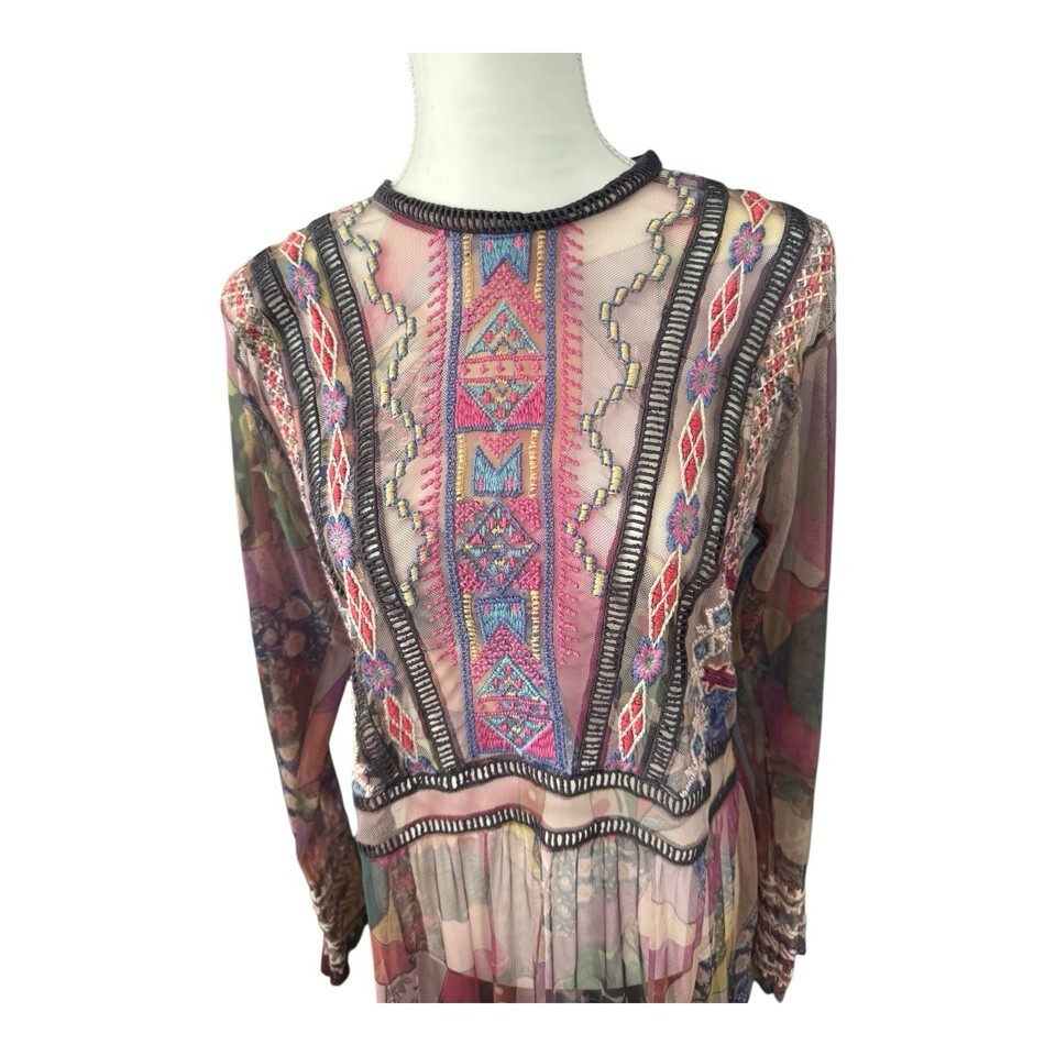Johnny Was Biya Gervase Mesh Midi Dress Long Sleeve Embroidered Medium No Slip