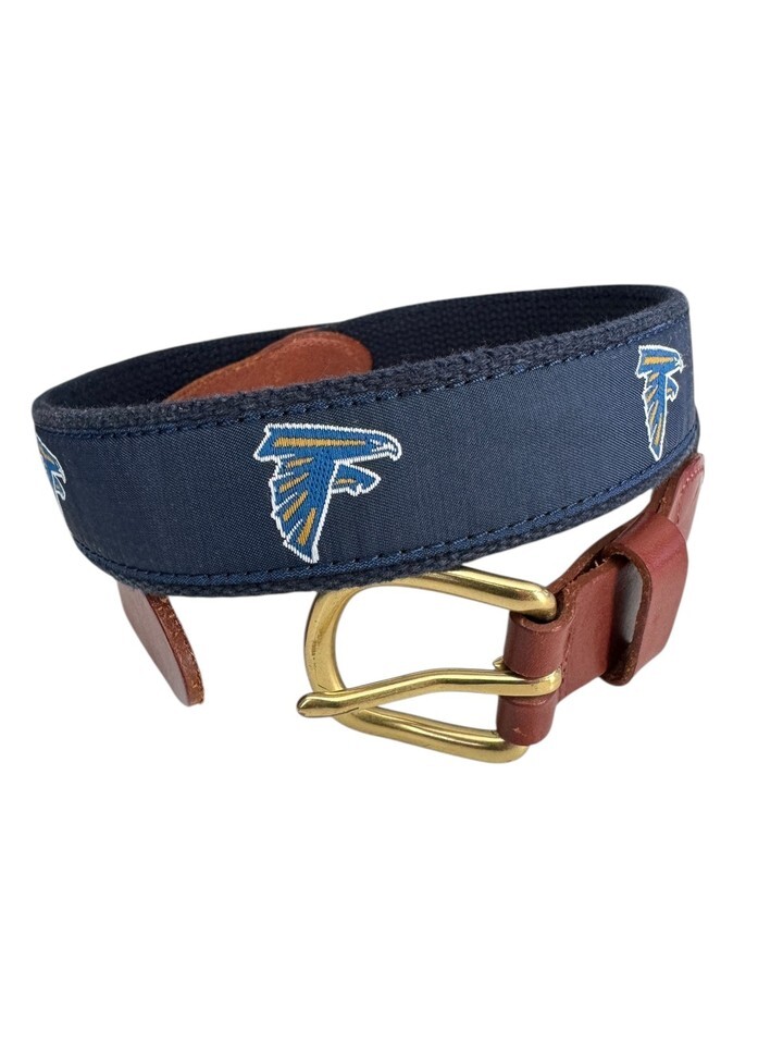 LeatherMan Ltd Atlanta Falcons Belt Mens 32 Blue Canvas Brown Leather Top Grain