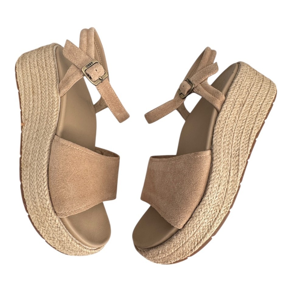 Abeo Devyn Shoes Womens Size 10 Neutral Wedge Platform Espadrille Sandals Suede