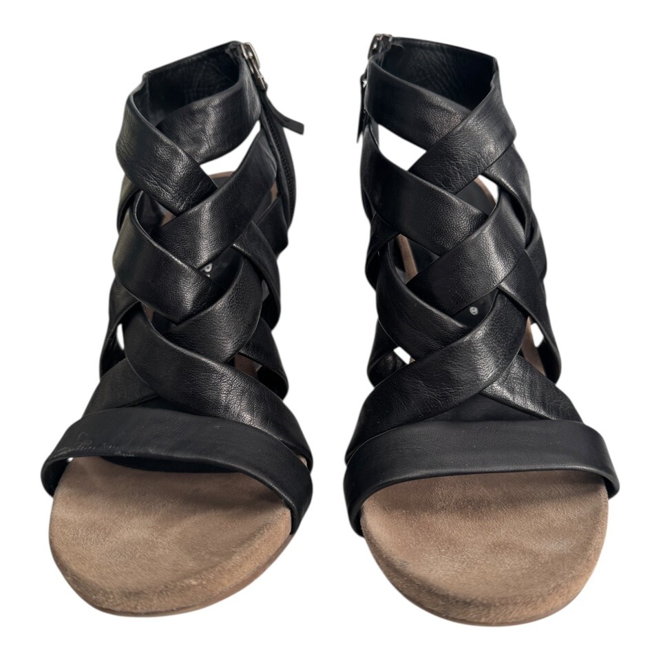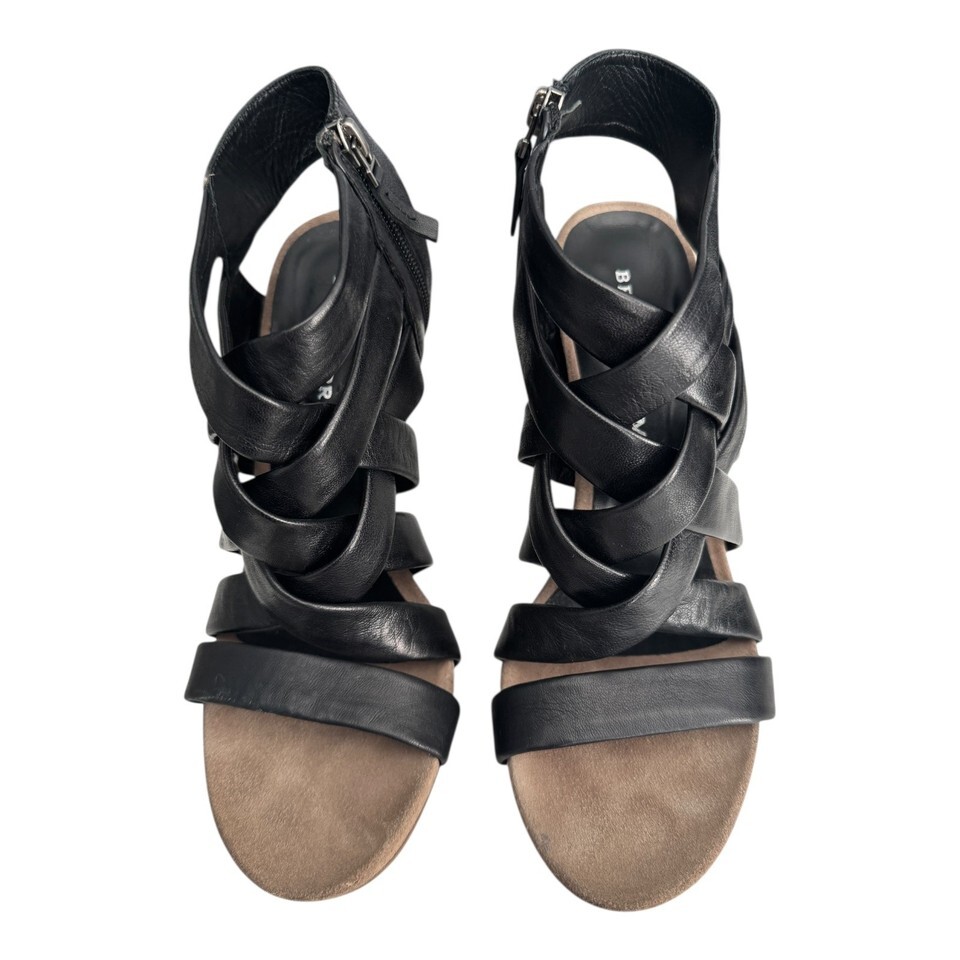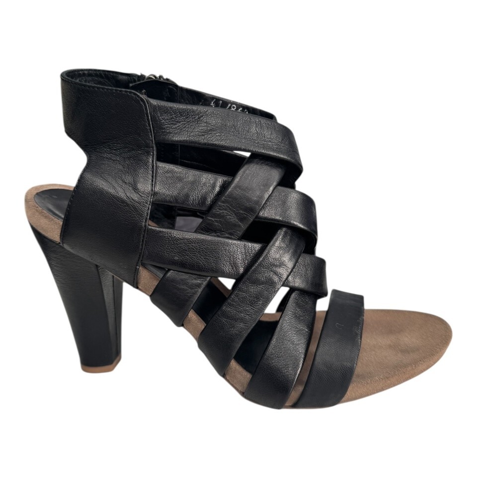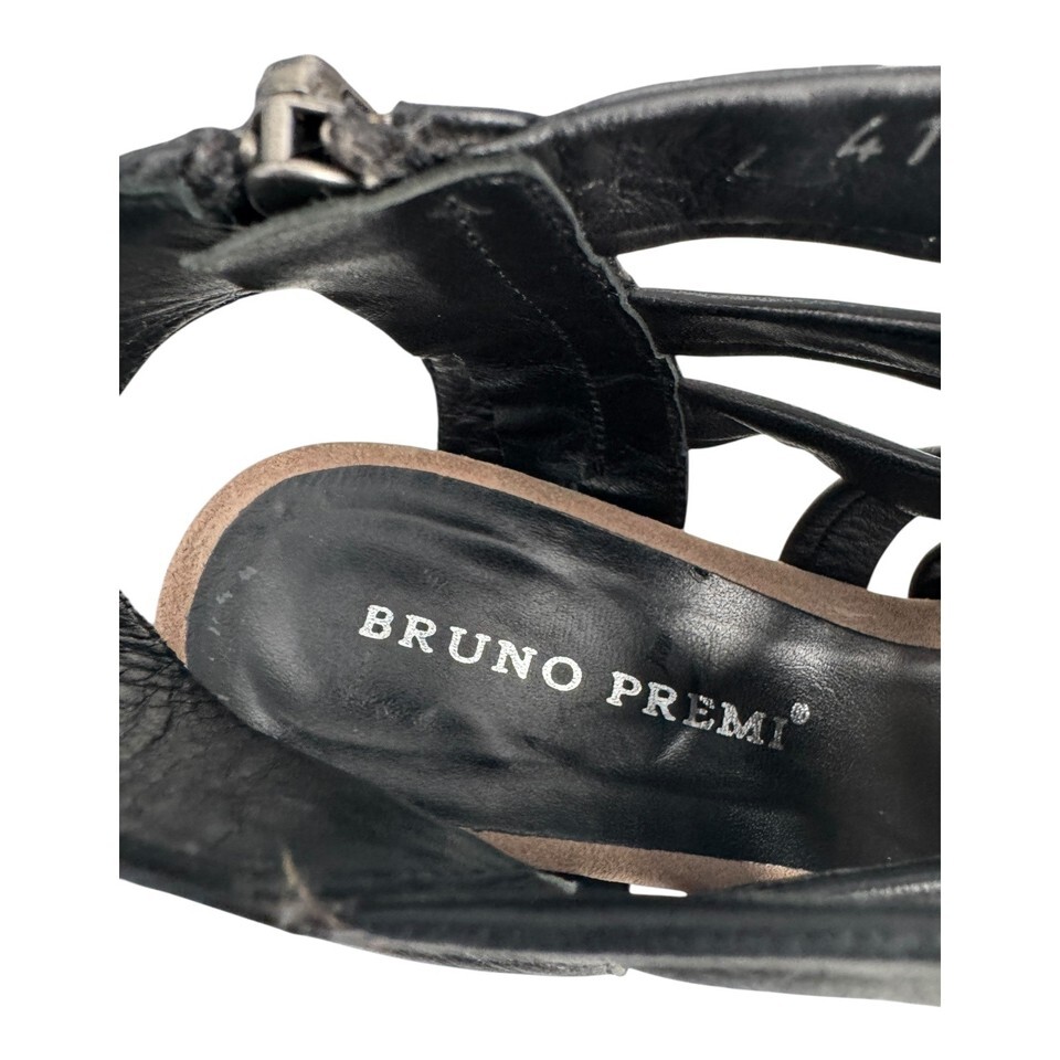 Bruno Premi Shoes Womens US 10/ 41 Black Leather Strappy Heeled Sandals Zip Back