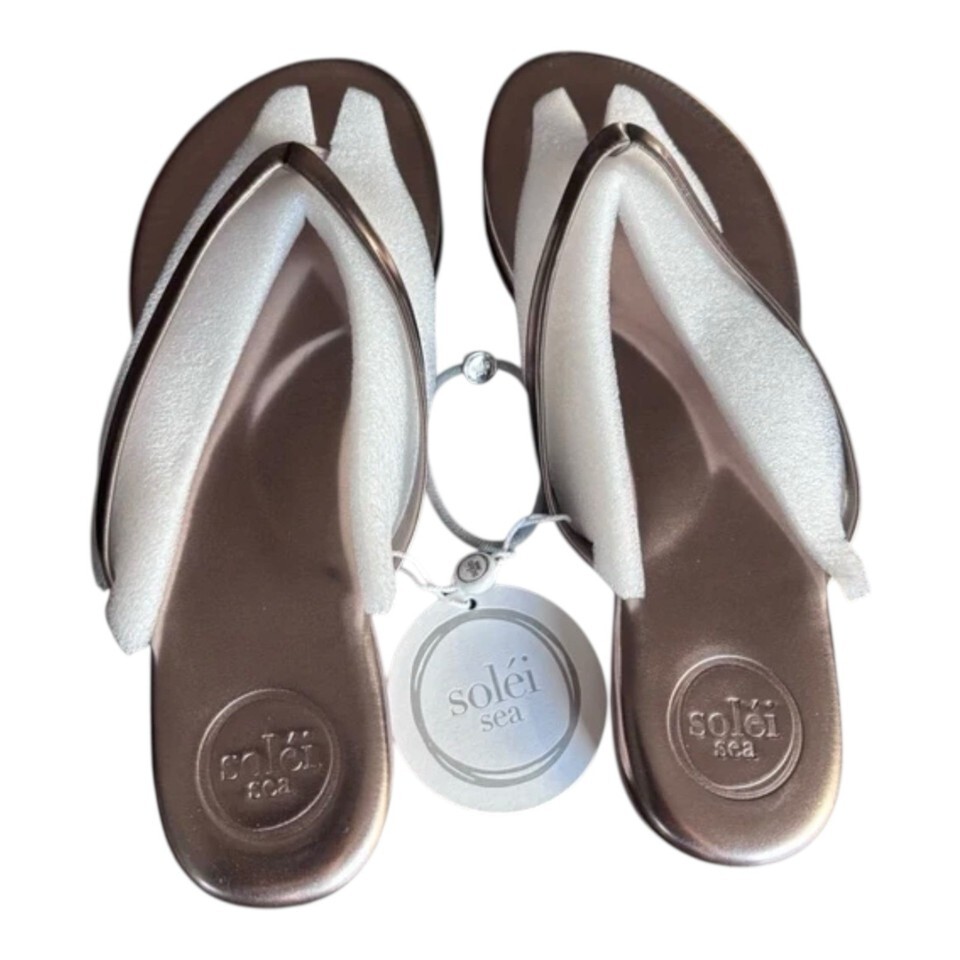 FREE PEOPLE SOLEI SEA Sz 9 (8-8.5) Around Town Metallic Pewter Flip Flop Sandal