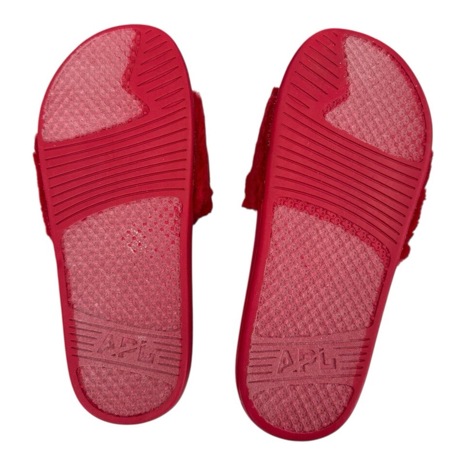APL Women’s Shearling Furry Slide Sandals in Red/Silver Size 10