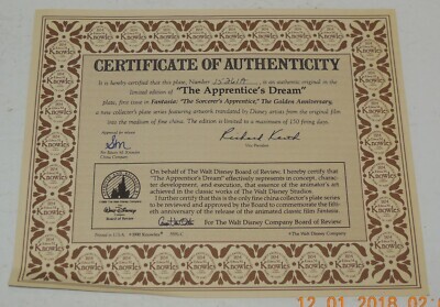For Sale is a vintage Knowles Disney Fantasia Collectors Plate "The Apprentice's Dream" . it in very good condition as seen in the pictures provided what you see is what you will receive. Please ask Any and All Questions prior to purchasing. Fast Same or Next day shipping with Free Delivery Confirmation within the U.S. Payment Due within 7 days of purchase (if you need more time please let us know In advance) we love to combine shipping is always a Yes and Most of the time Additional Items Ship for free.