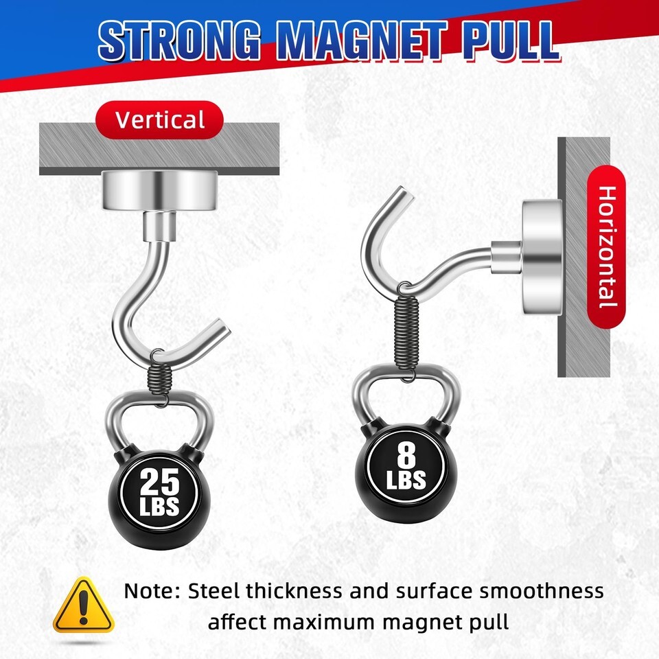 8 Pack Magnetic Hooks 25 Lbs Strong Neodymium for Hanging Grill Fridge Cruise US