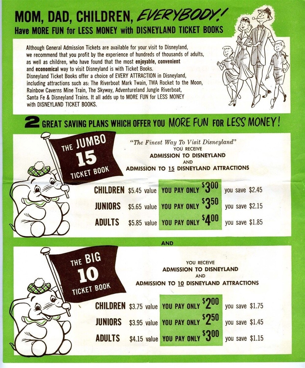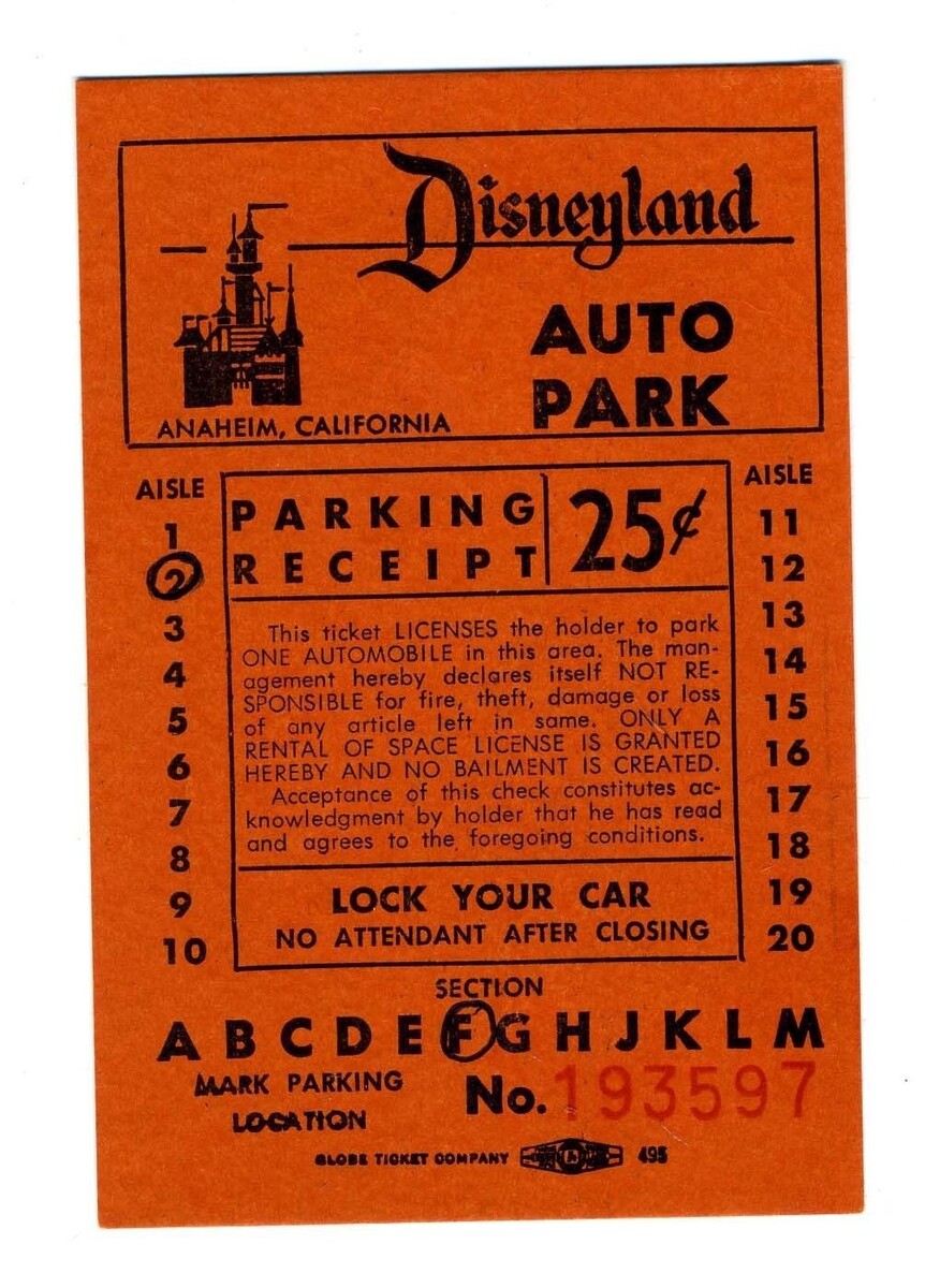 Disneyland Important Ticket Information Brochure 1950's + Auto Park Ticket