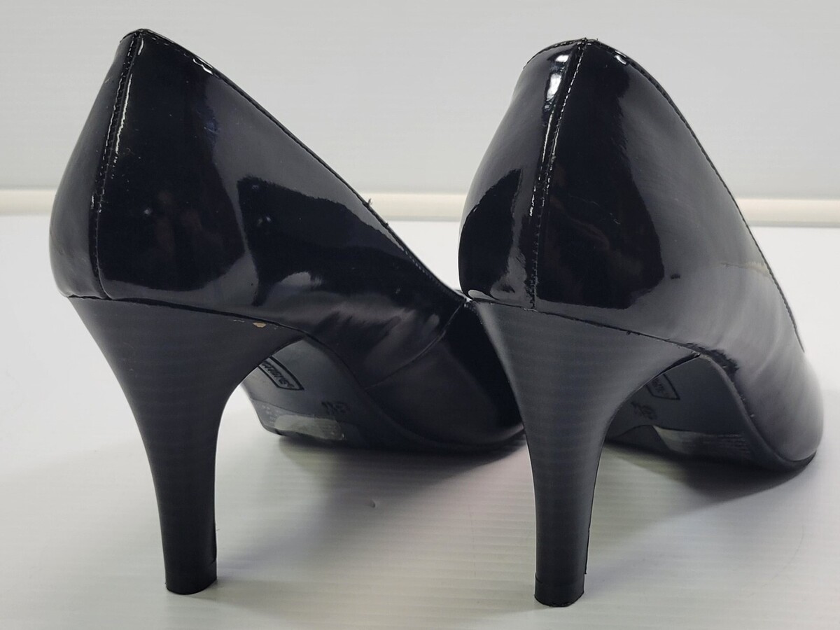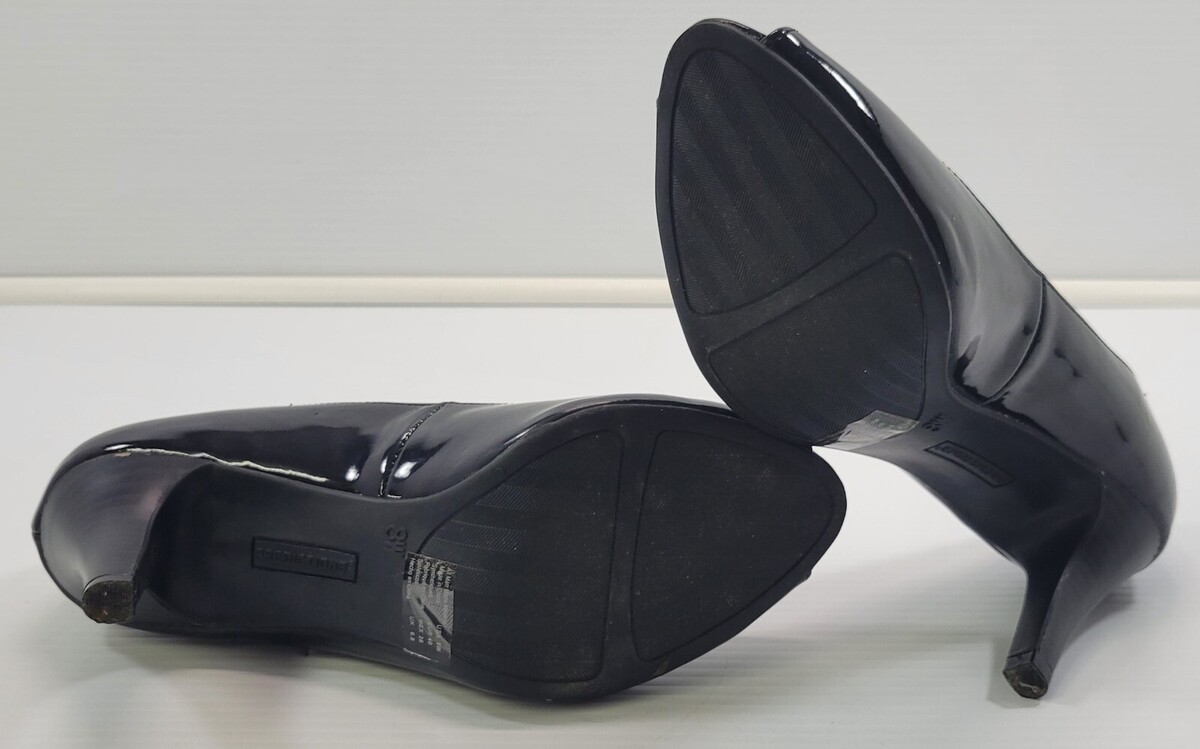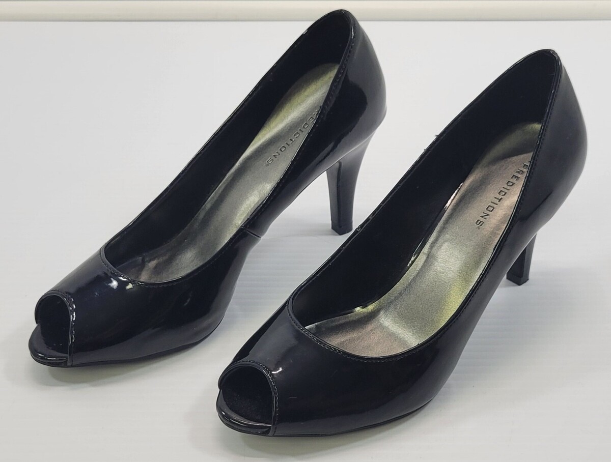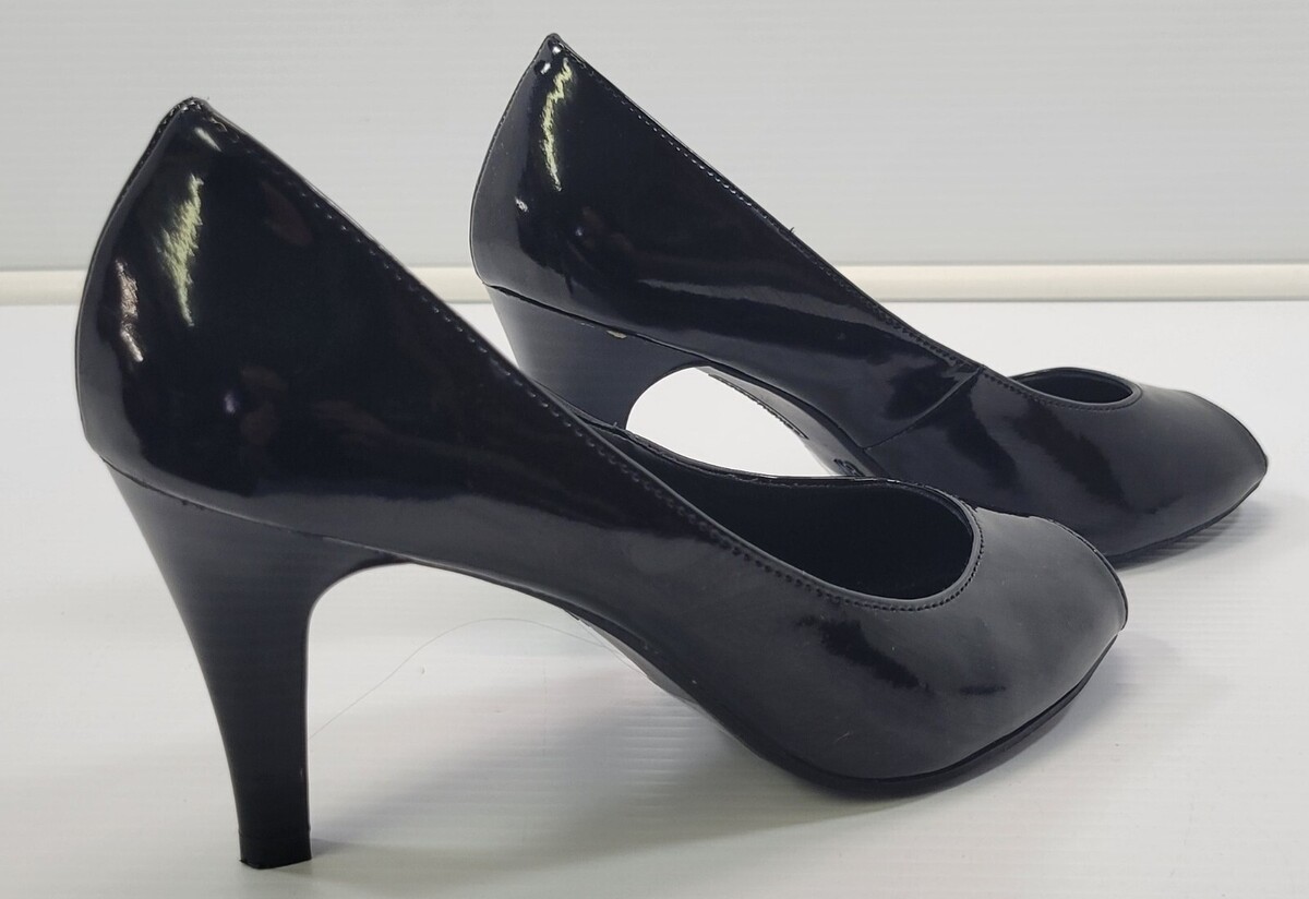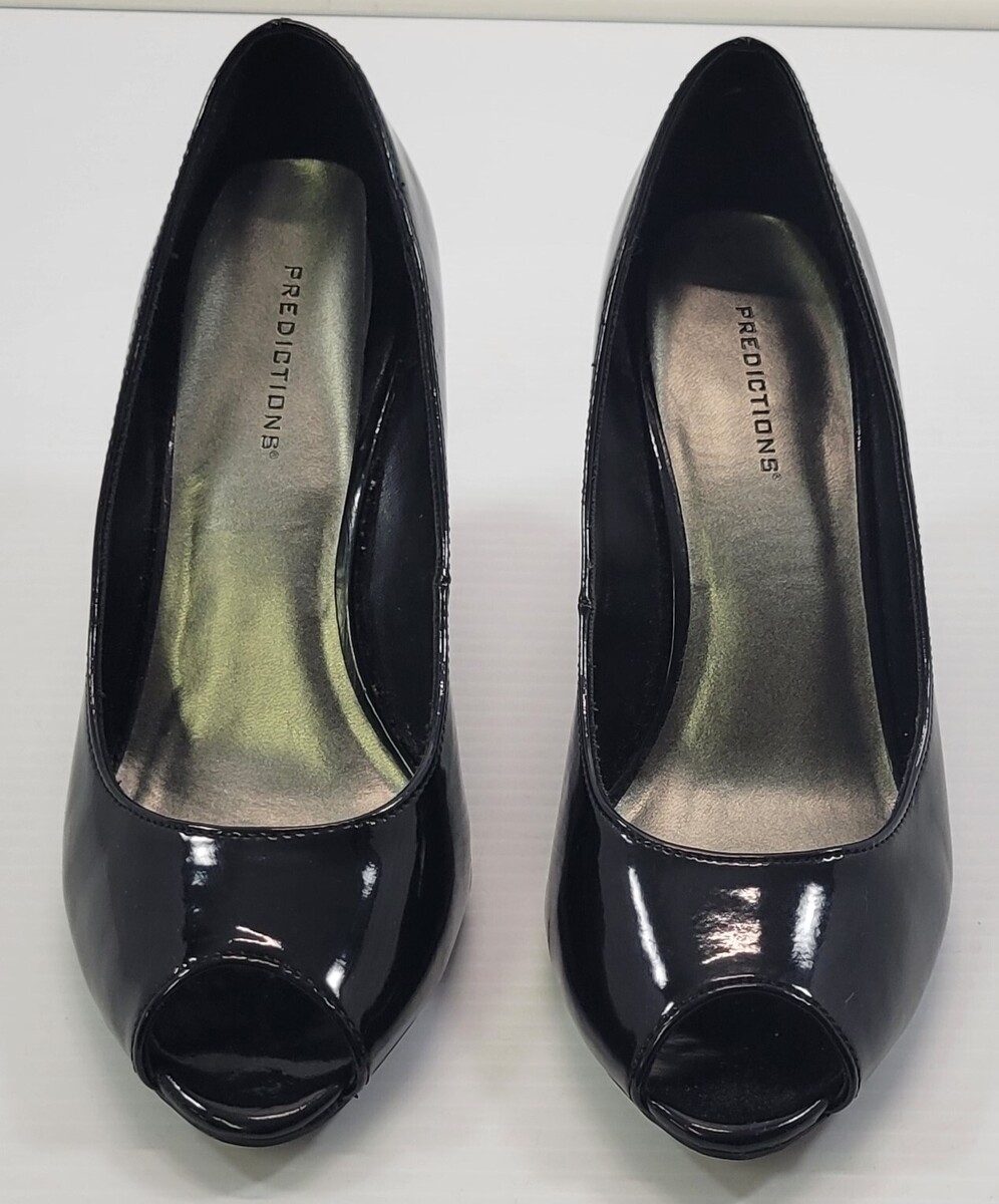 BG) Predictions Woman Black Glossy Open Toe High Heel Shoes 8W