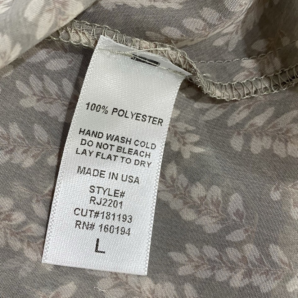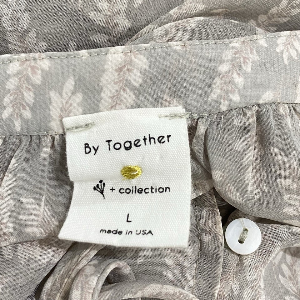 BY TOGETHER Sheer CHIFFON Gray L Balloon Sleeve PEASANT BLOUSE All-Sheer